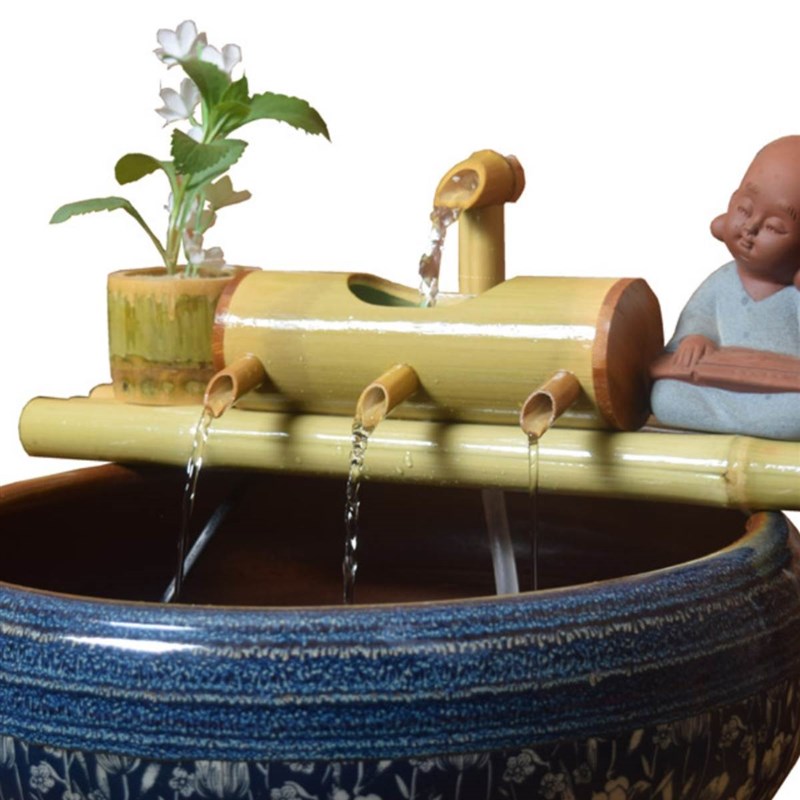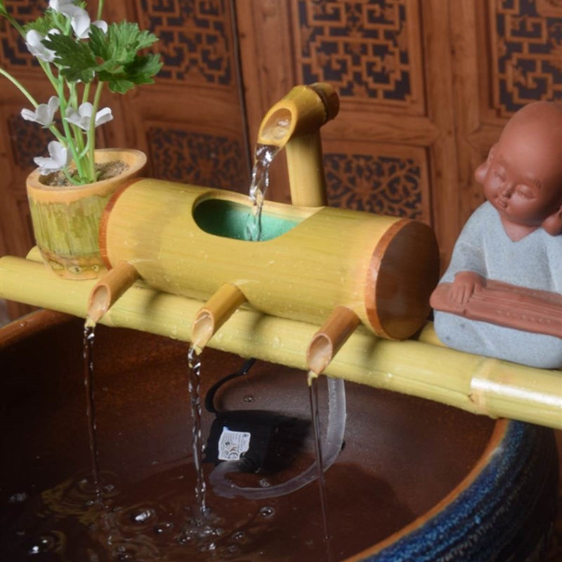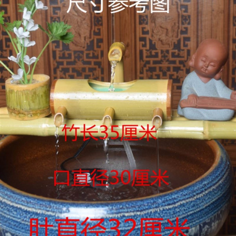 竹筒流水过滤摆件陶瓷鱼缸竹流水器鱼池循环流水造景Y家居创意装