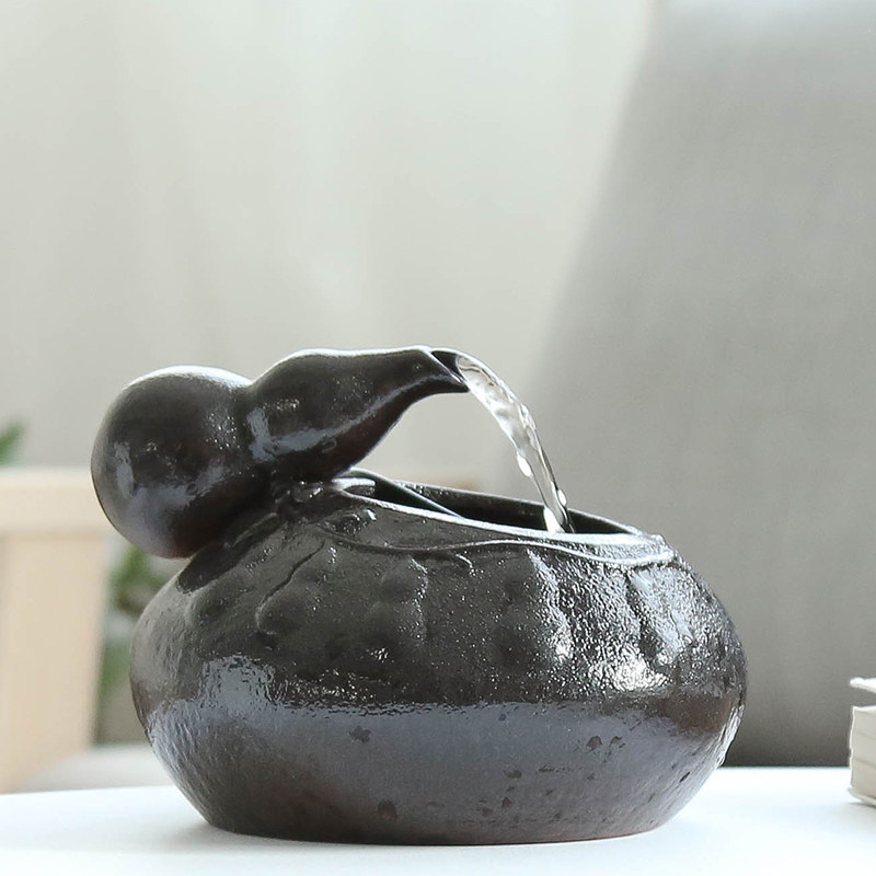 创意鱼缸小型葫芦流水招财家居饰品喷泉水景现代桌面景观