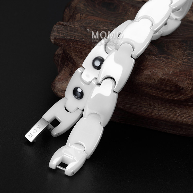 进口保健颈椎日本MOMO陶瓷磁珠钛金属项链正品纯白色锗钛磁石手链