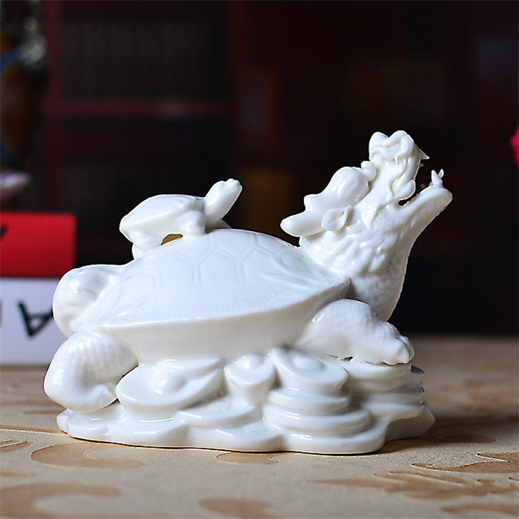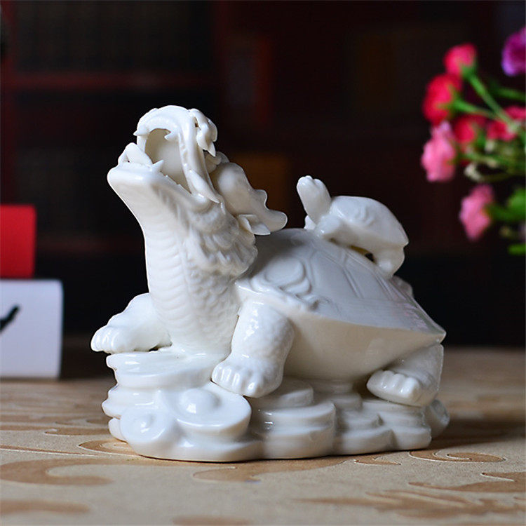 陶瓷工艺品龙龟母子龟白色家居客厅玄关招财摆件办公室店铺装饰品