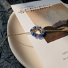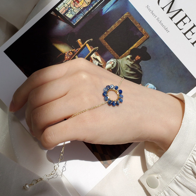蓝色水晶珠手链女森系细款精致轻奢纯银ins小众设计金色复古幸运