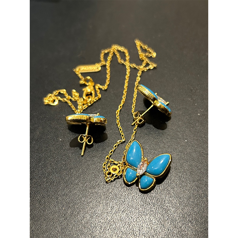 tingtings【眼前一亮】绿松石蝴蝶项链女精致白贝母气质耳钉饰品