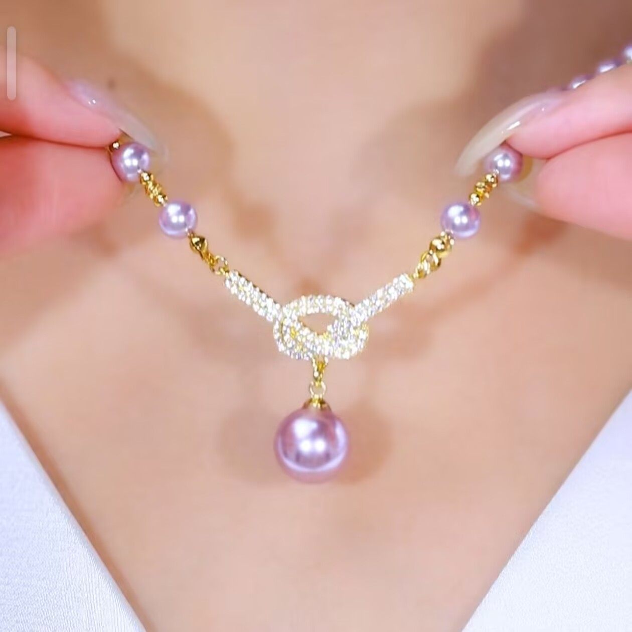高级感紫色满钻珠珠项链女网红轻奢气质百搭小众设计感精美项链女