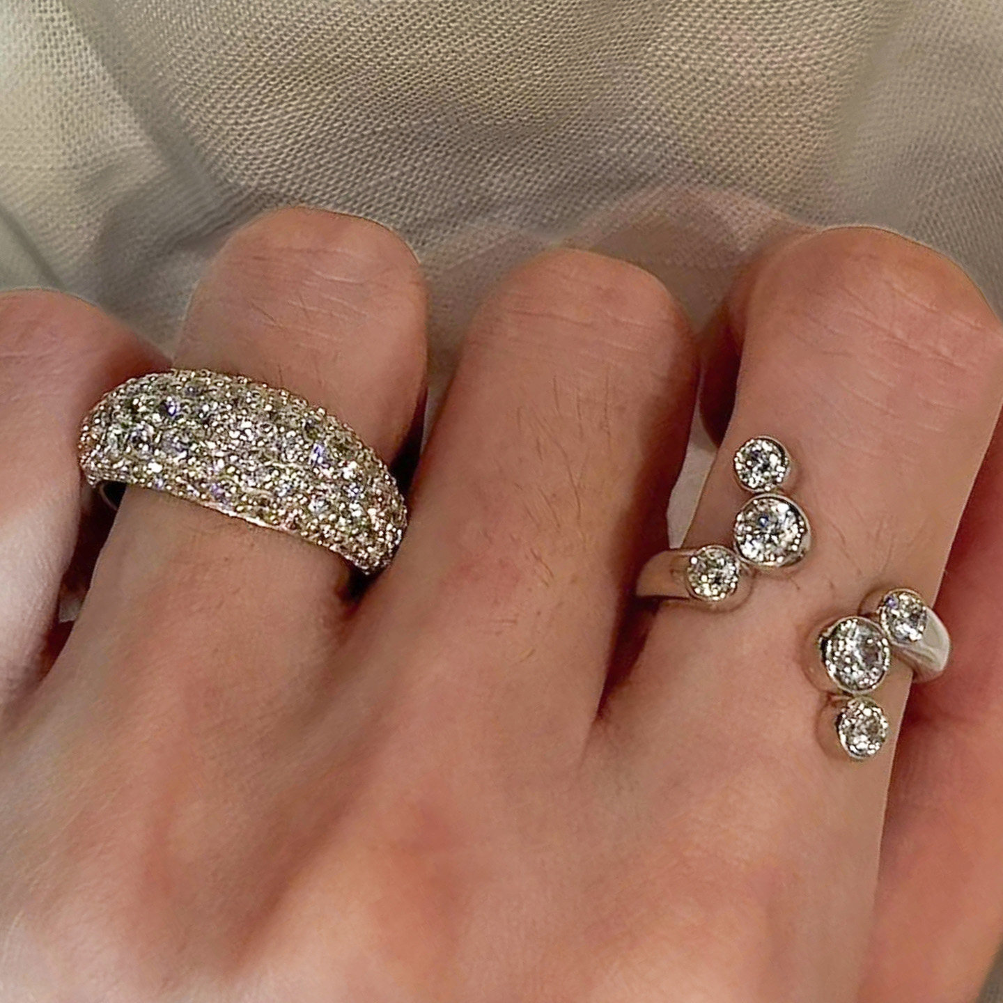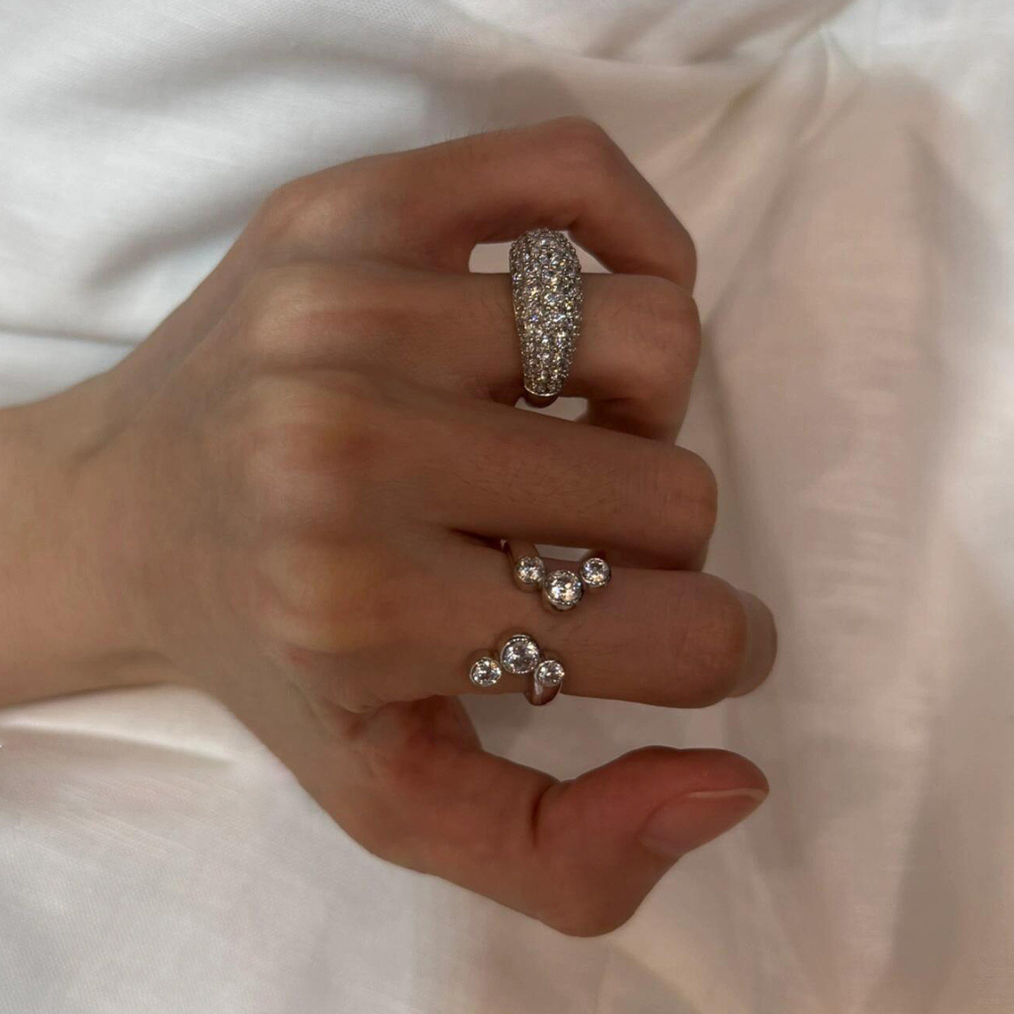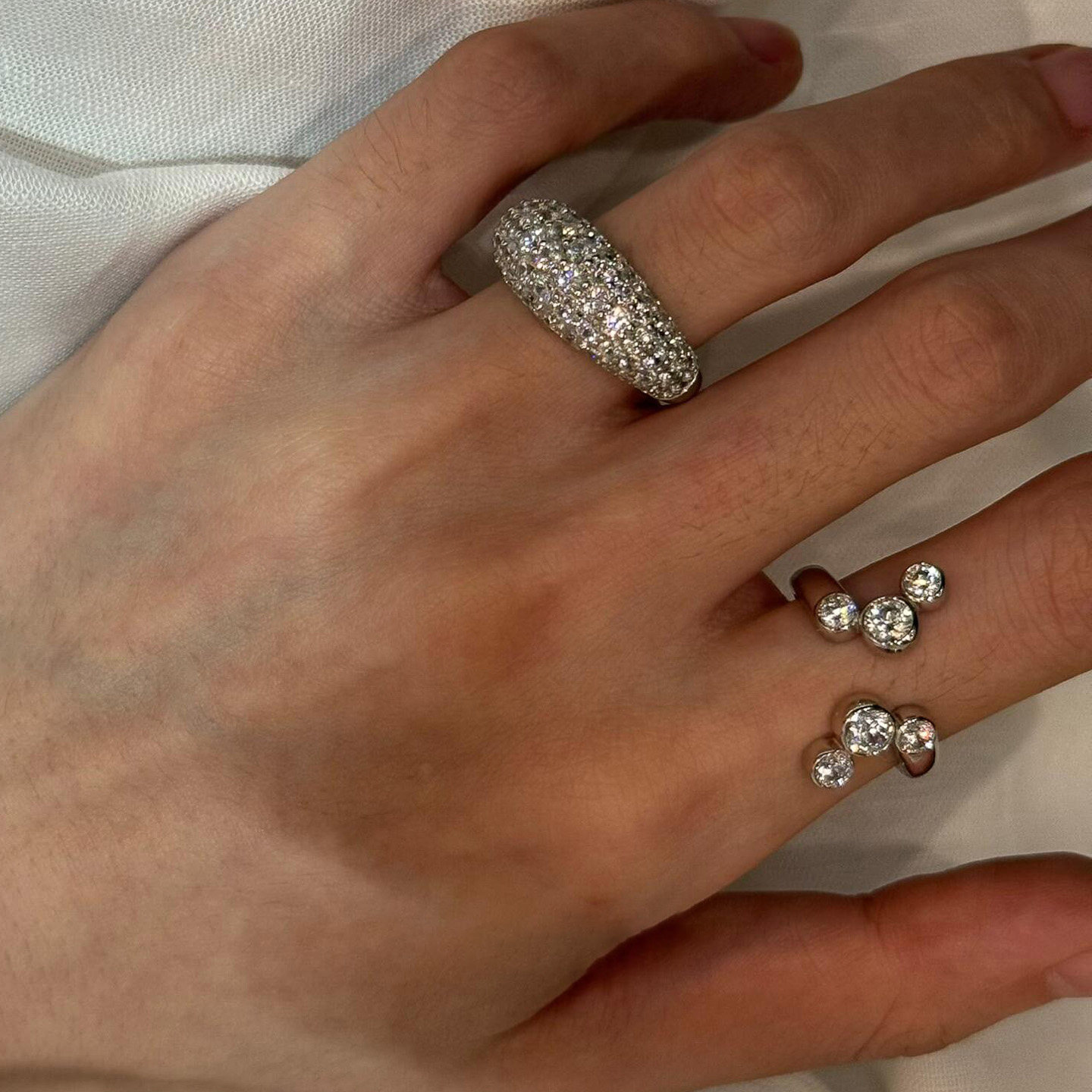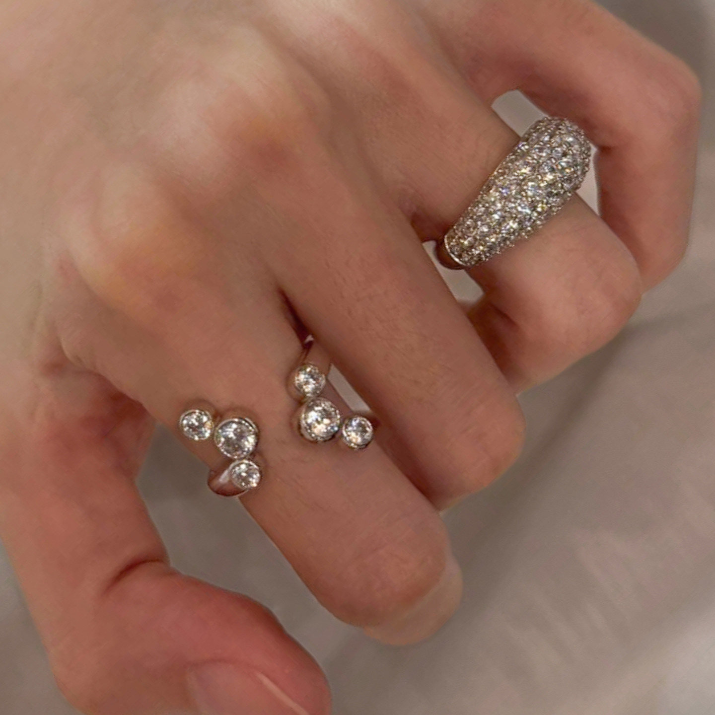 老钱风叠戴椭圆满钻戒指女轻奢高级感双头圆钻开口食指戒小众设计