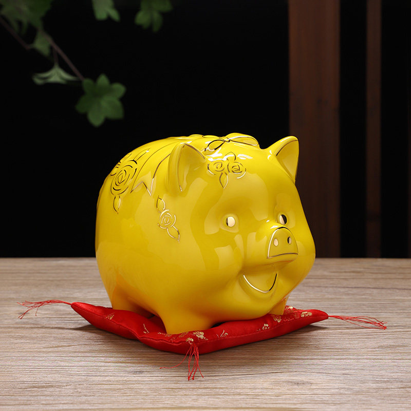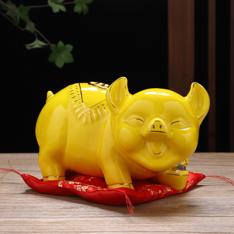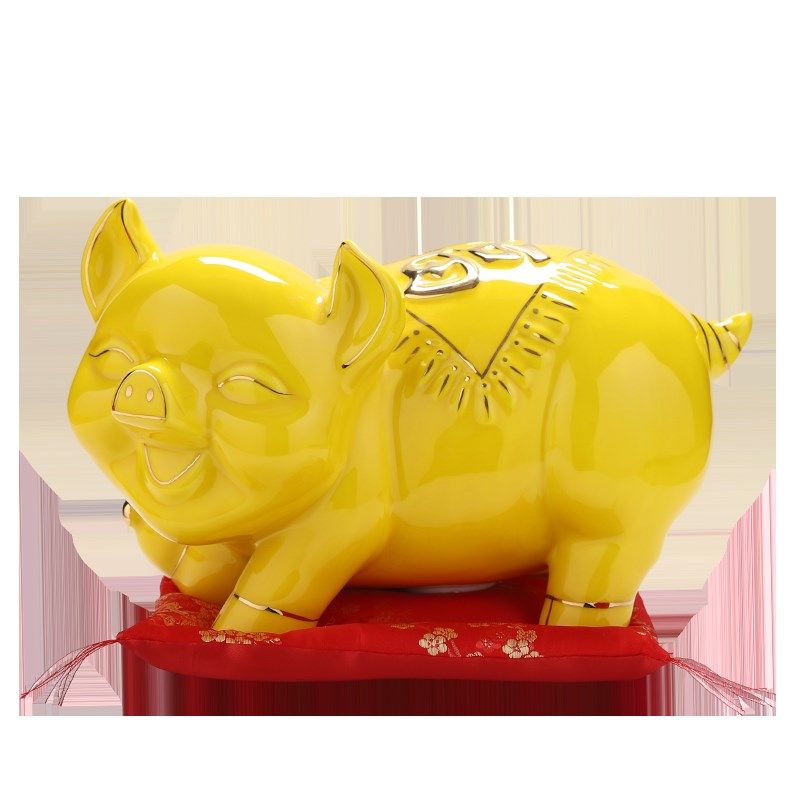 陶瓷黄色招财猪存钱罐存钱筒风水摆饰大小号店铺开业礼品儿童礼物