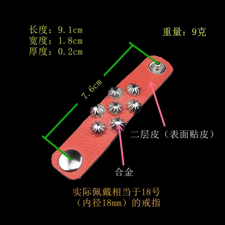 银色合金南瓜铆钉密集排列蓝色荔枝纹贴皮朋克戒指搭配装饰品指环
