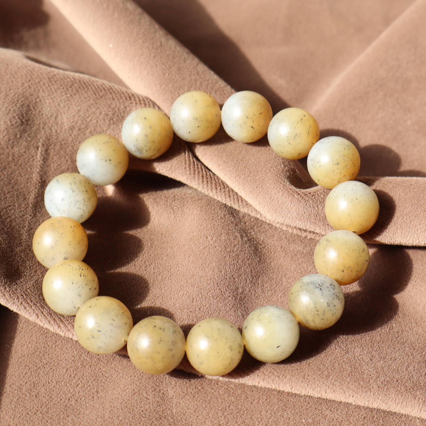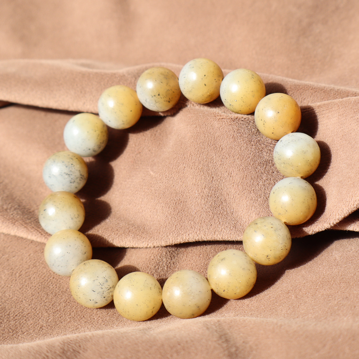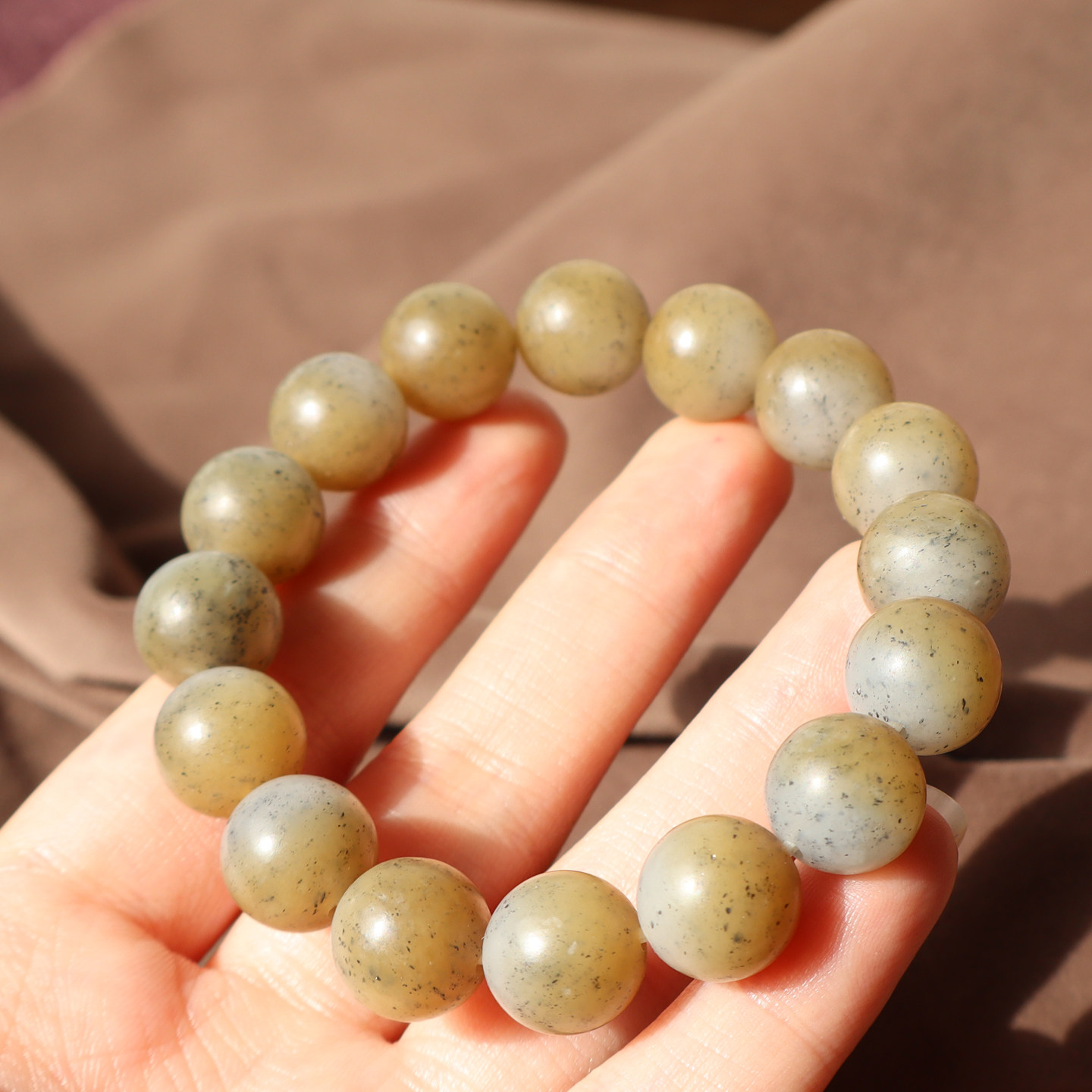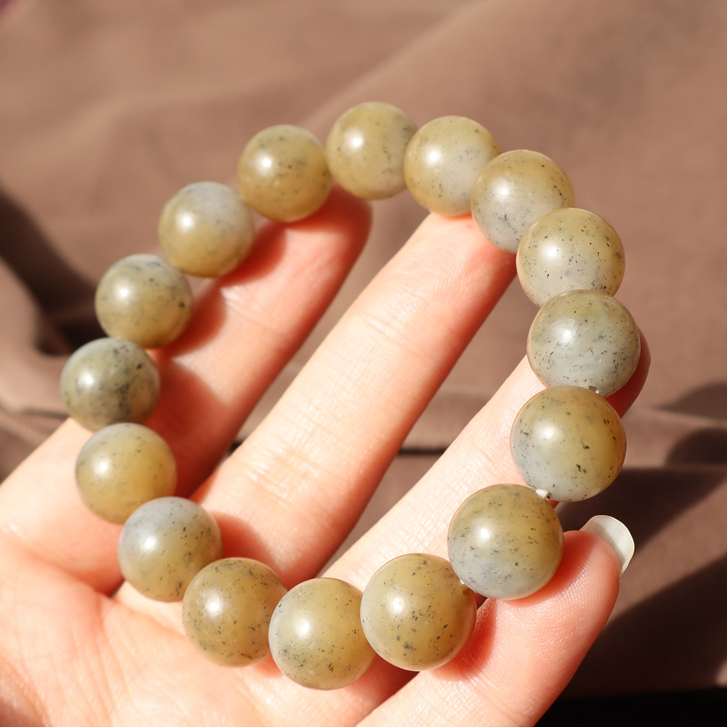 精品方言和田玉珍藏级新疆细油润且末料糖青花12mm圆珠手串手链A2