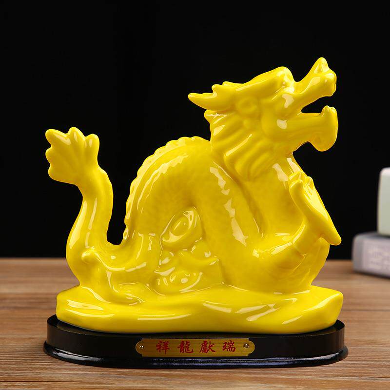高档陶瓷12蛇十二生肖黄色摆件风水 属鼠牛虎财属兔龙马羊猴鸡招