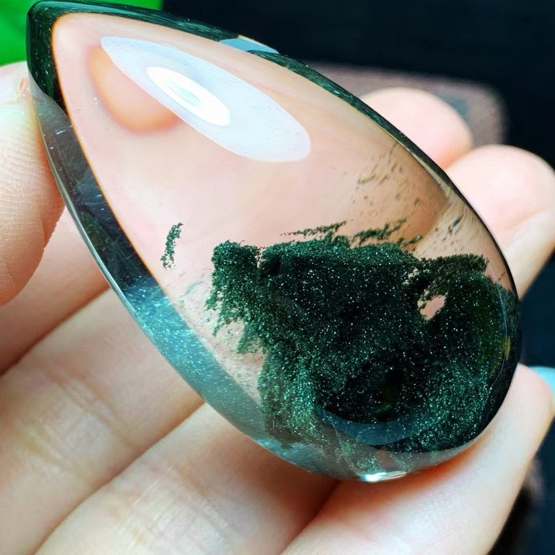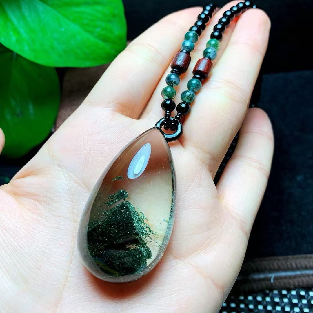 魅晶天然水晶晶体通透墨绿色金字塔千层大水滴吊坠