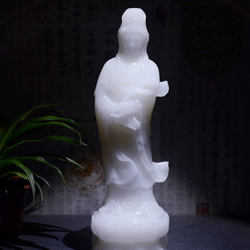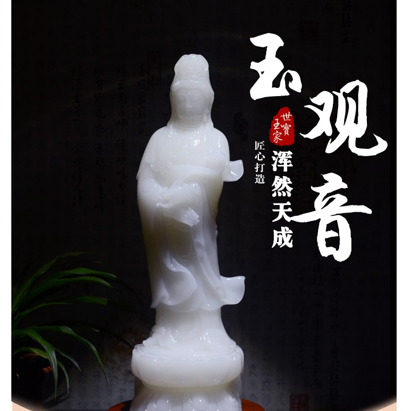 天然白玉观音吉祥保平安健康摆件家居客厅房间大堂摆件