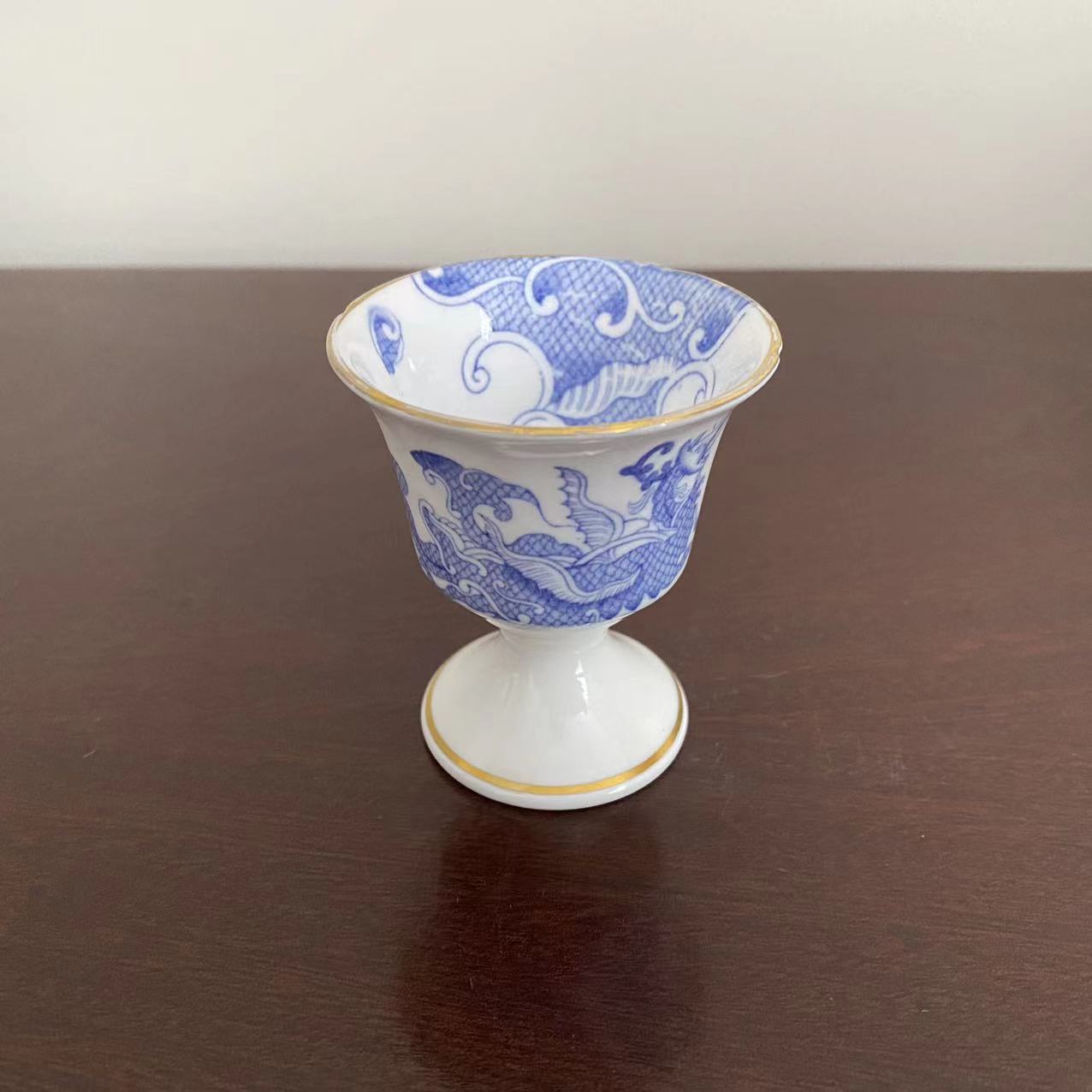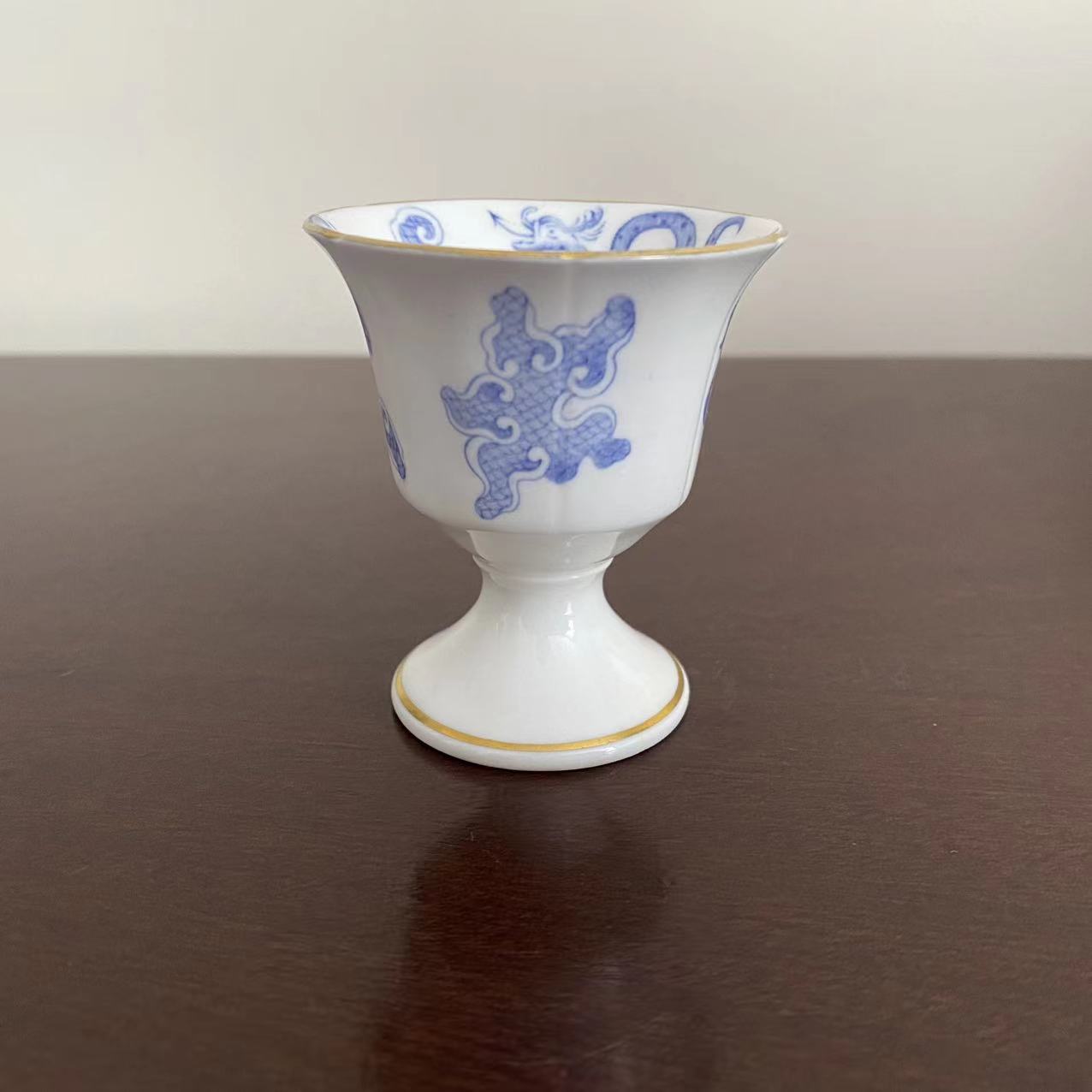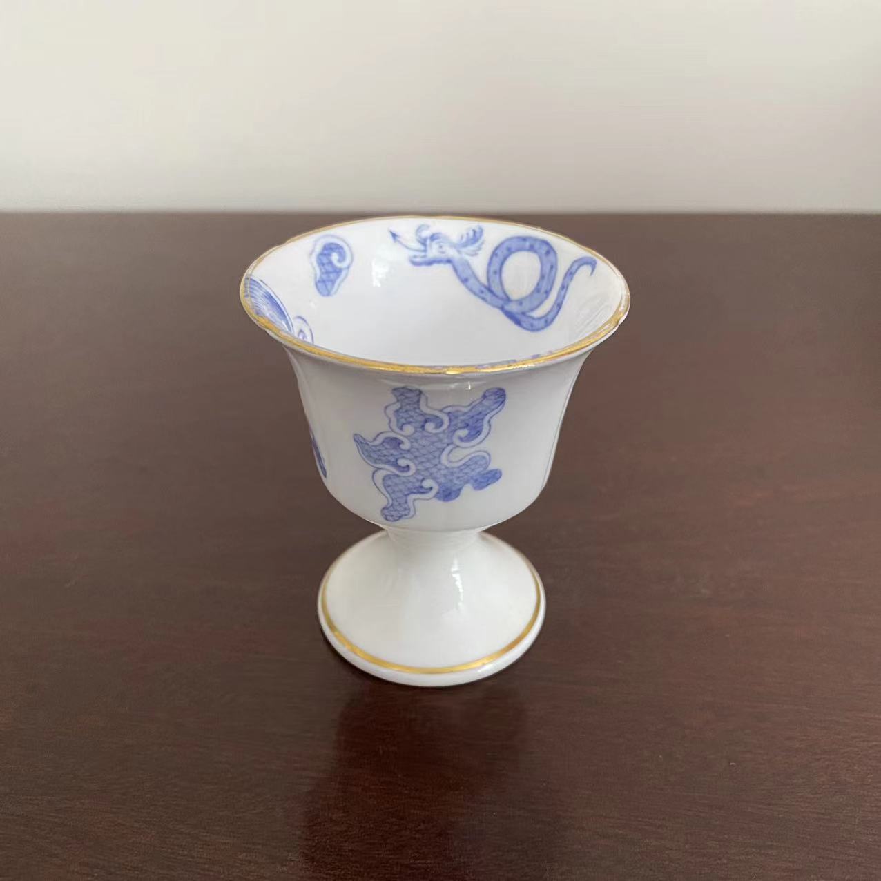 Royal Worcester 皇家伍斯特 1952年青花飞龙酒杯 英国骨瓷烛台