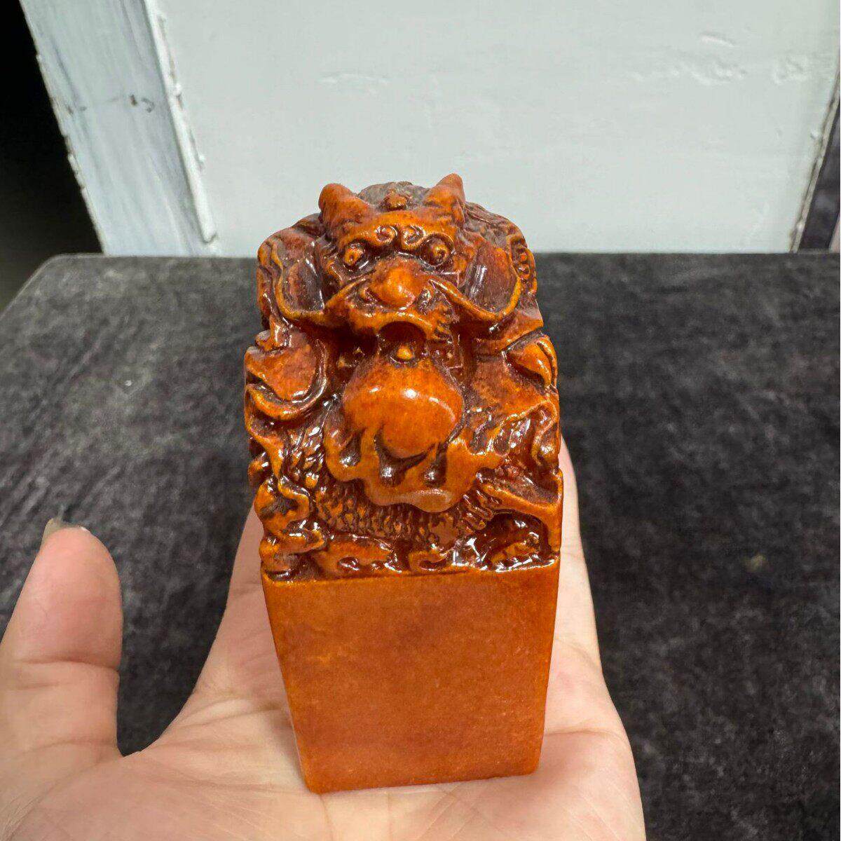 仿古树脂龙戏珠摆件仿寿山石客厅玉玺印章古玩收藏篆刻工艺品