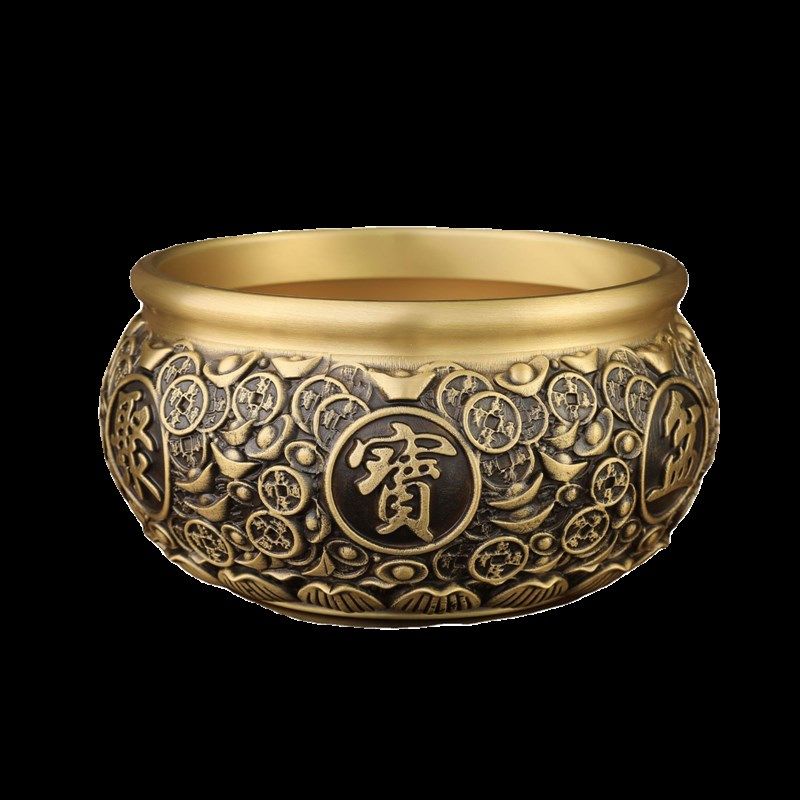 超大号实心纯黄铜金钱元宝聚宝盆铜摆件中式客厅办公室店铺存钱罐