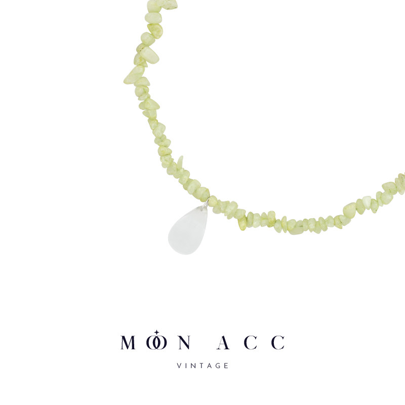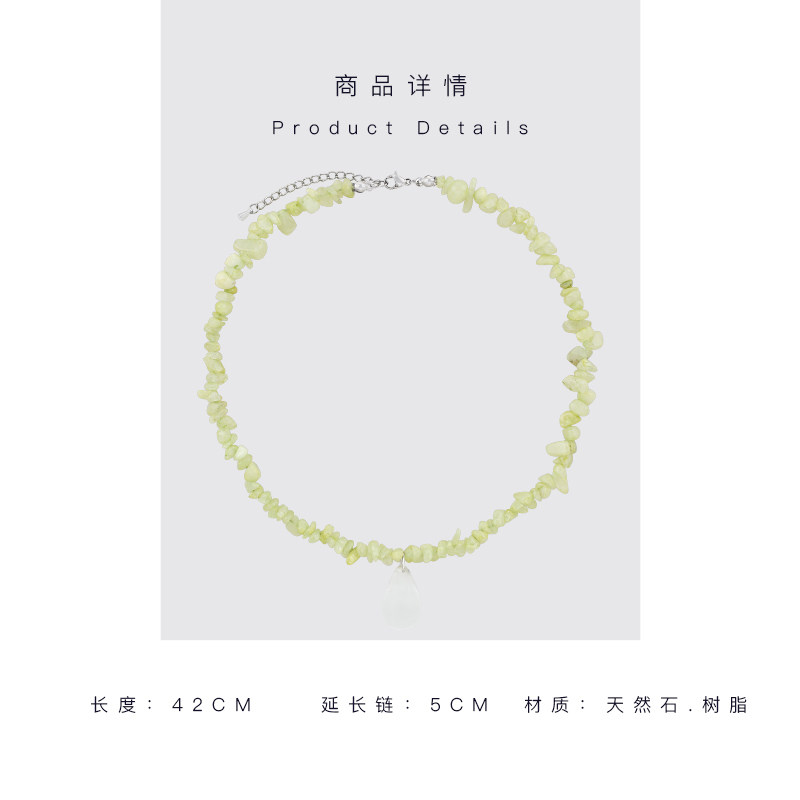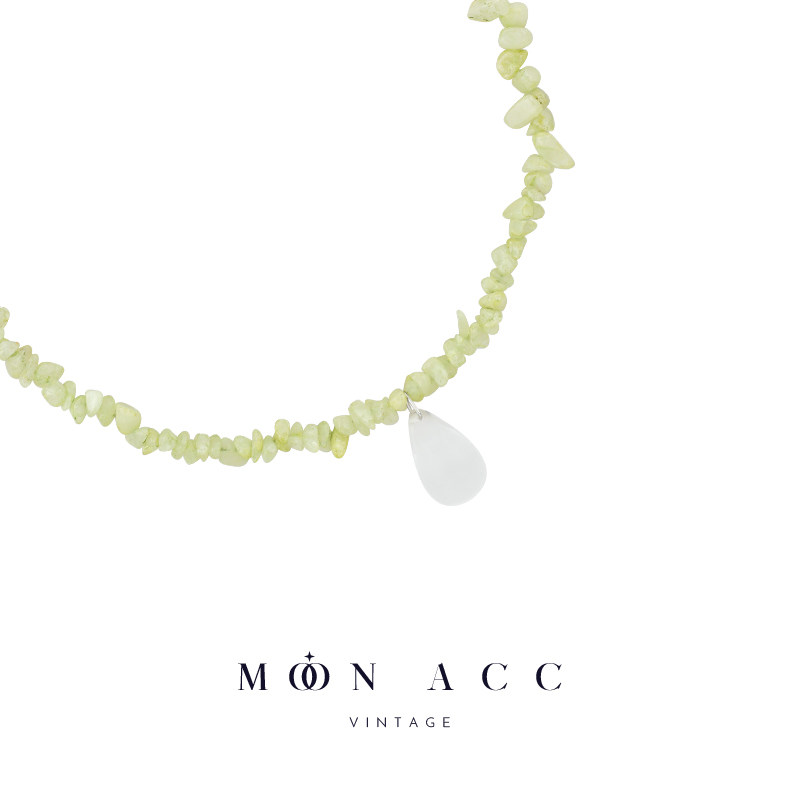 MOON ACC/青绿色不规则天然碎石锁骨链 水滴吊坠项链搭配裙子颈饰