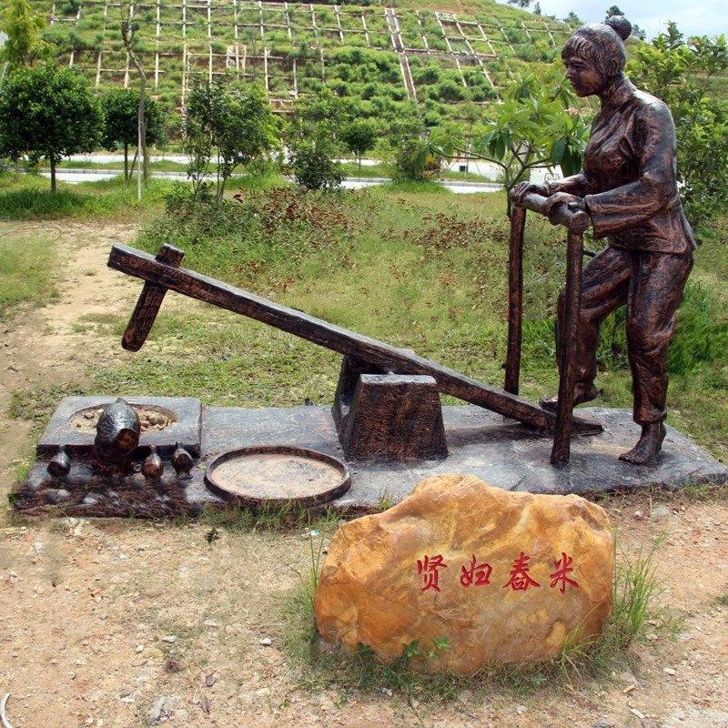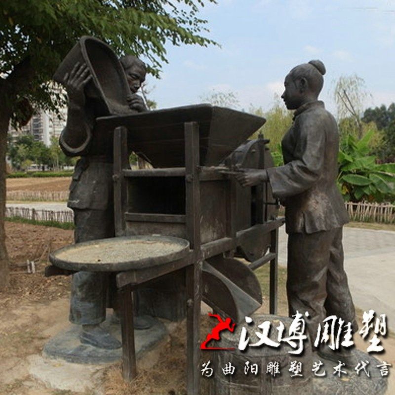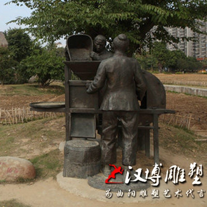 玻璃钢仿铜人物雕塑田间农耕小品割稻丰收情景雕塑定制新农村景观