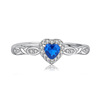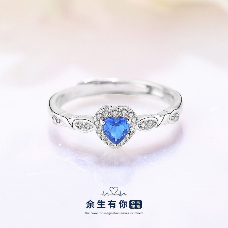 s925纯银小众设计蓝色锆石开口戒指女爱心指环可调节气质首饰
