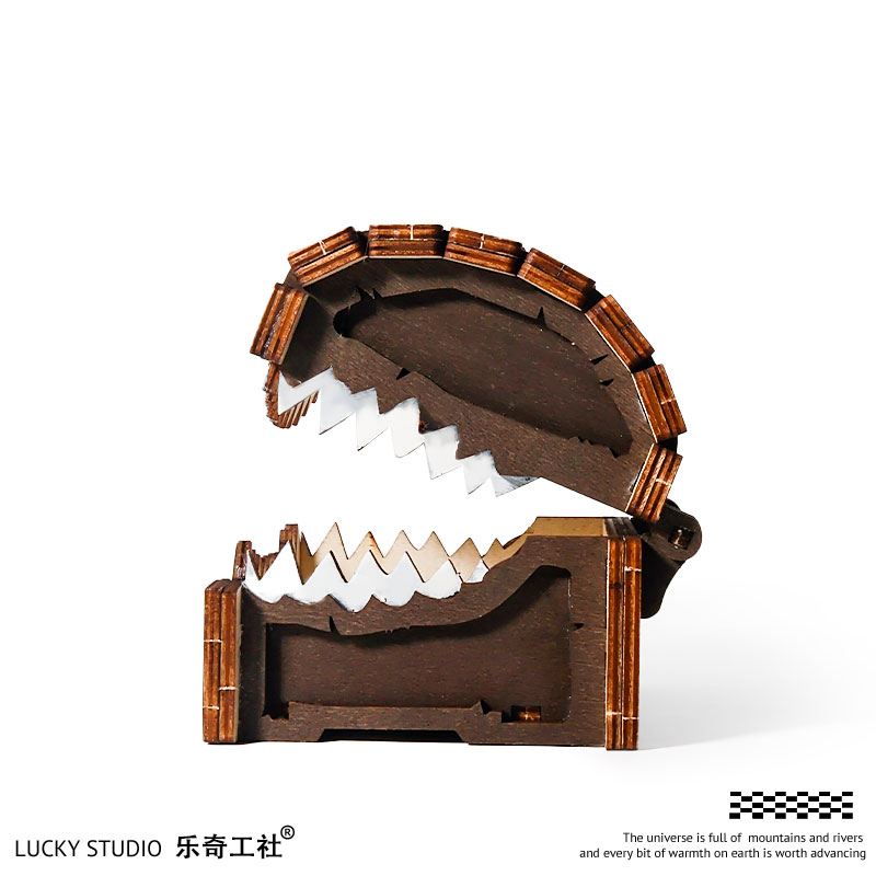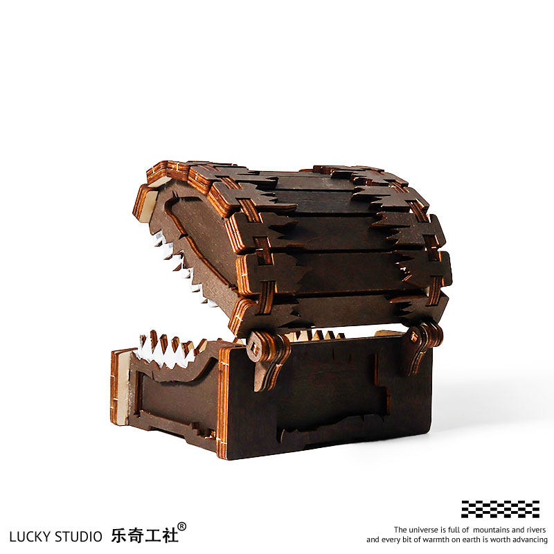 小心被咬!怪物宝箱收纳盒F子木质 创意工艺品摆饰