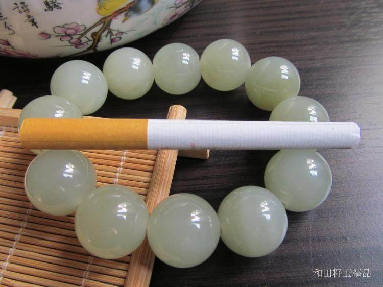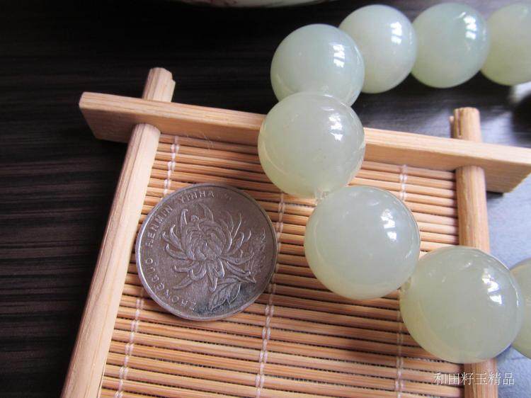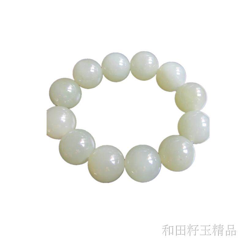 特惠价 自雕自销新疆和田玉青白玉籽料精品1.8圆珠手链 男款苏工