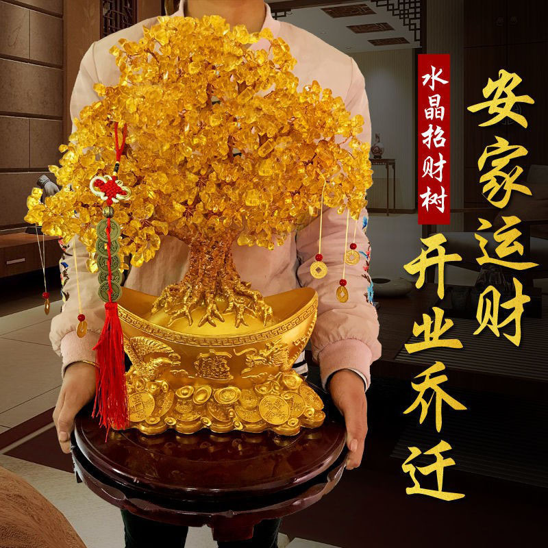 黄水晶金元宝摇钱树商务礼品办公室招财树家居摆件发财树客厅装饰