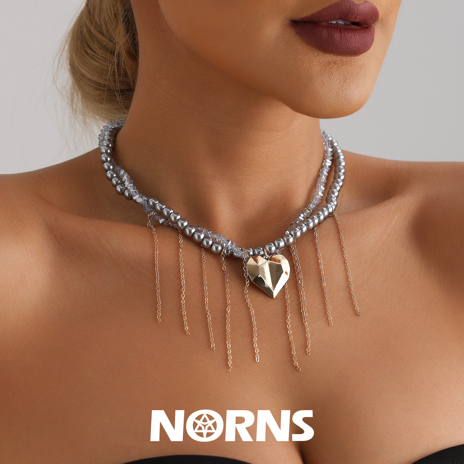 Norns欧美简约赛博朋克未来感金属几何爱心流苏锁骨链优雅项链