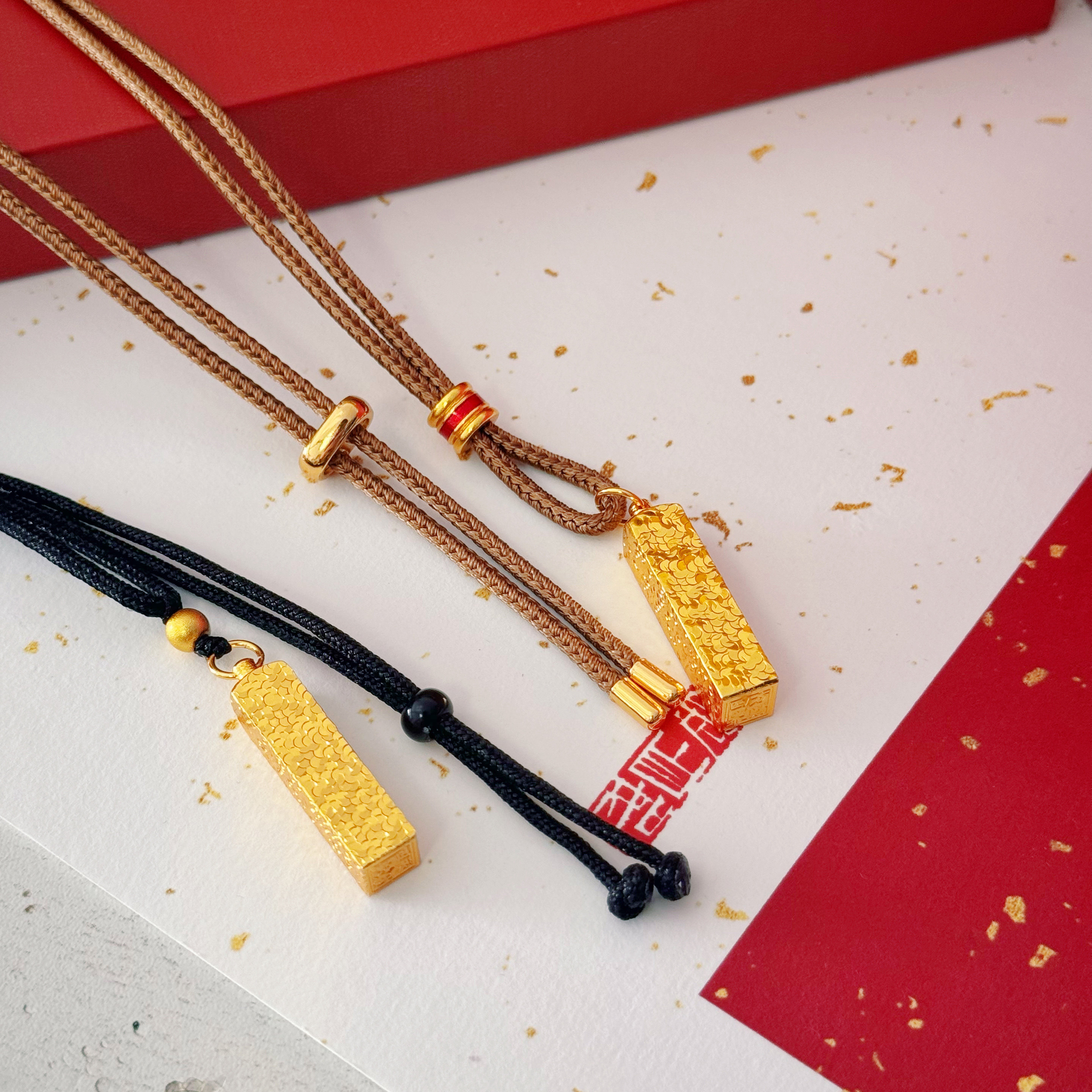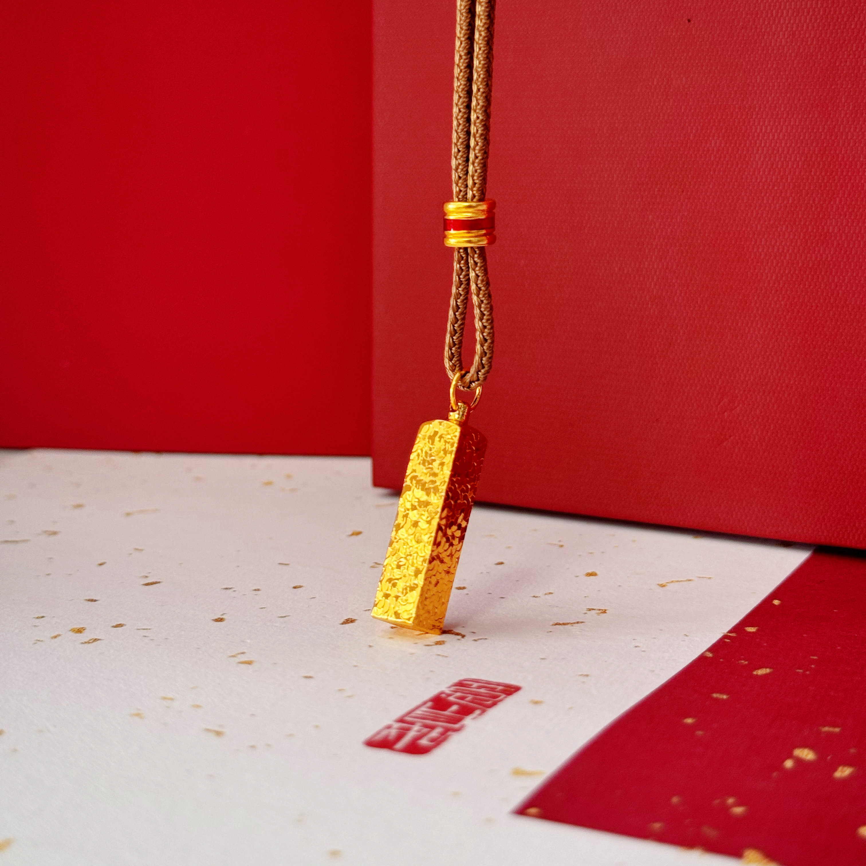新中式小金条吊坠碎冰冰四方来财项链实心小方砖碎金子毛衣链女款