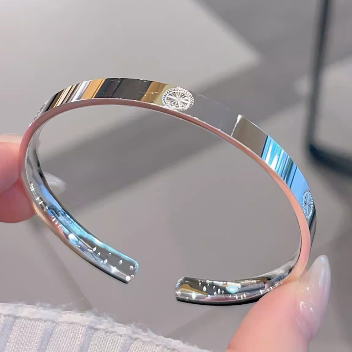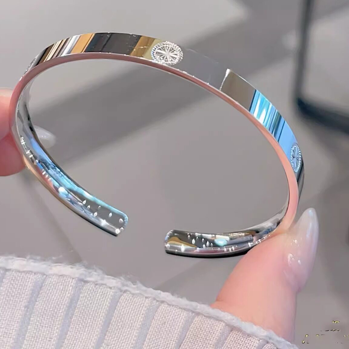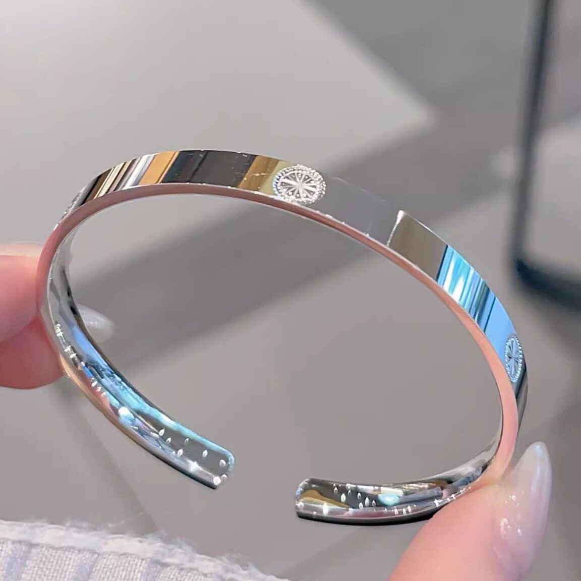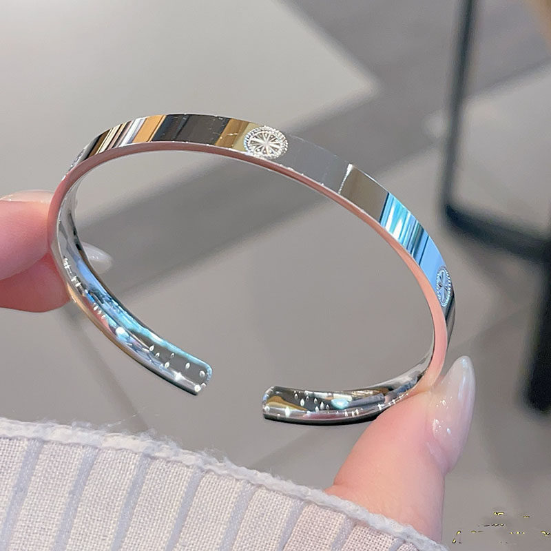 香港正生纯银999足银手镯卡卡宽面四方年轻款轻奢百搭送女友礼物