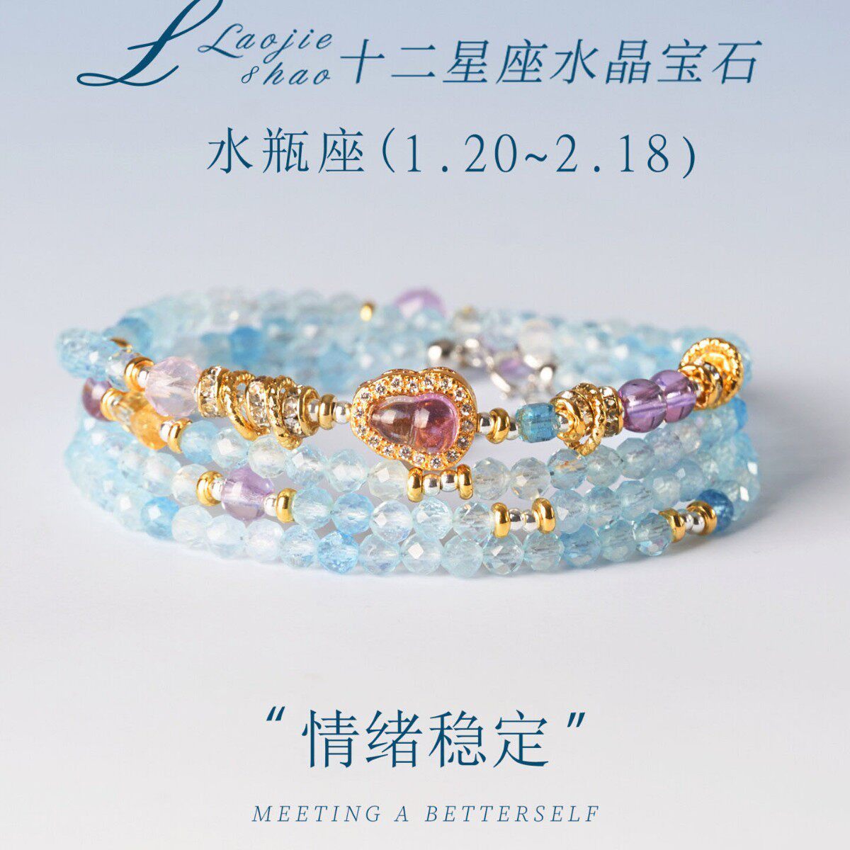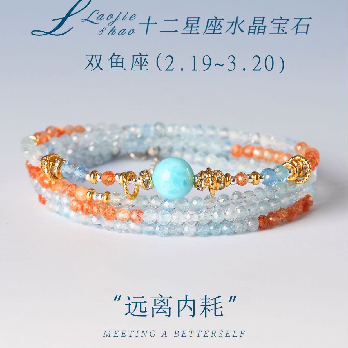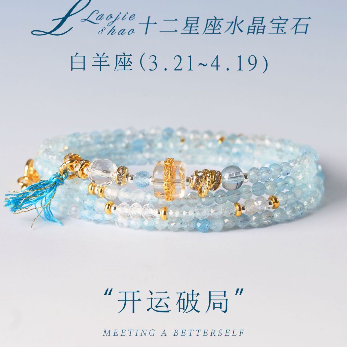 2026海蓝宝手串蓝色水晶手链十二星座双鱼座手链女款新款五行补水