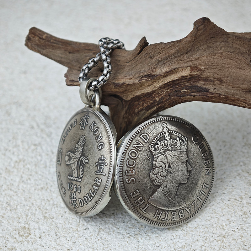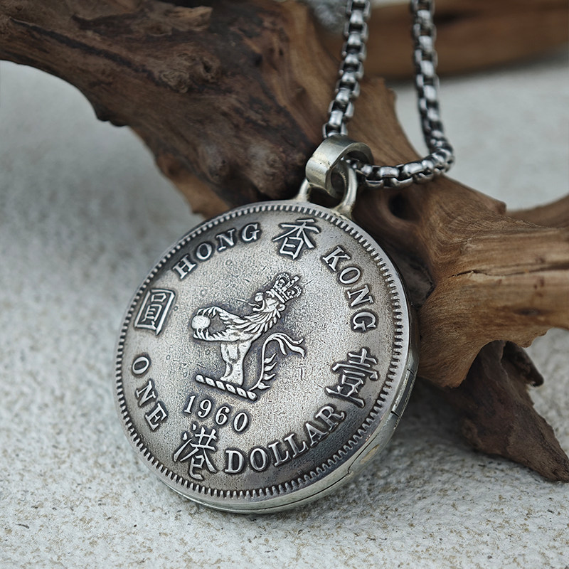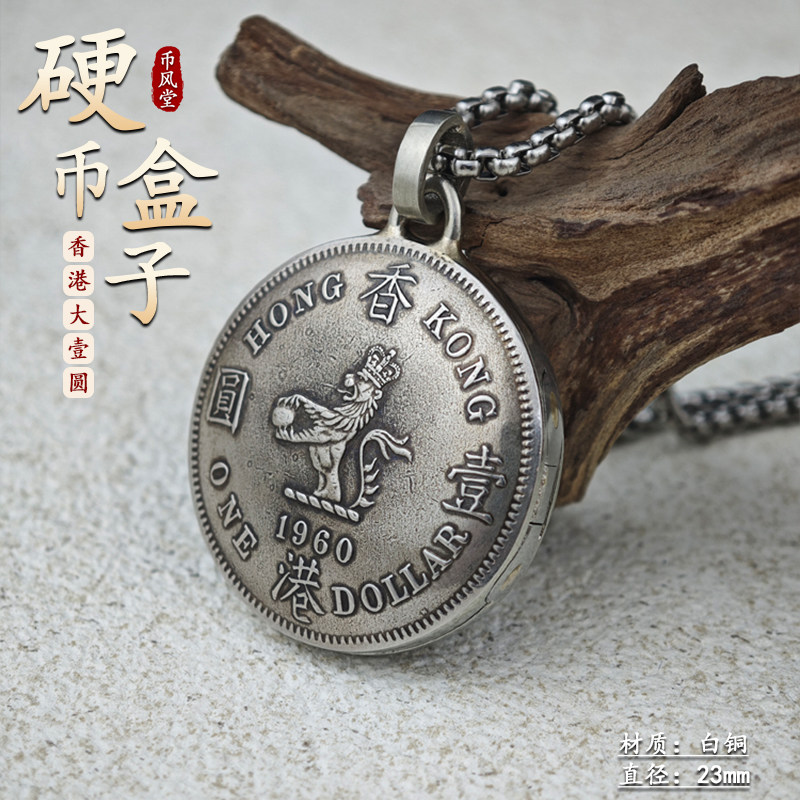 【币风堂】香港大一元硬币照片记忆盒可打开铜镍合金吊坠文创手作