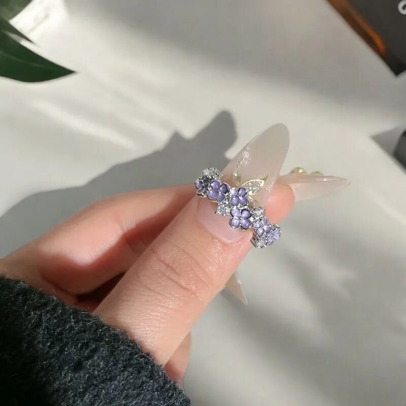 戒指女新款甜酷紫色滴釉花朵时尚轻奢指环高级感小众设计感食指戒