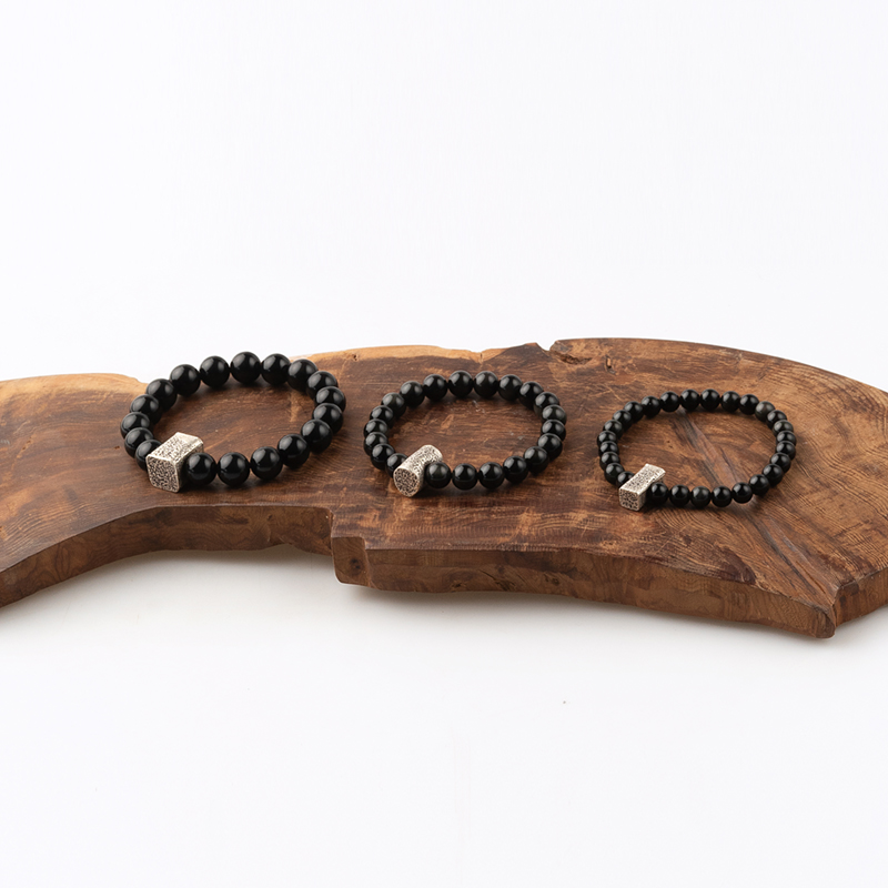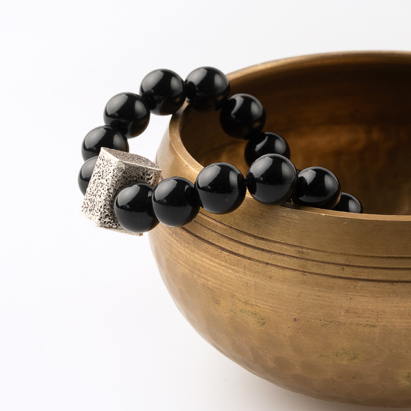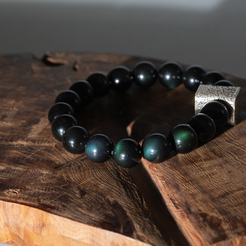 流云匠铺 6mm 8mm 10mm天然彩眼黑曜石单圈手串清迈手工银手链ZF
