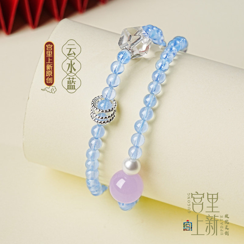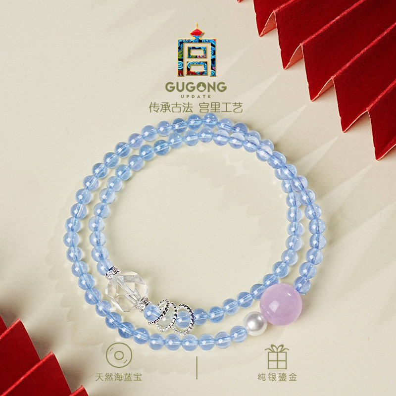 宫里上新海蓝宝手串女天然蓝色水晶手链多圈串珠手饰叠戴生日礼物