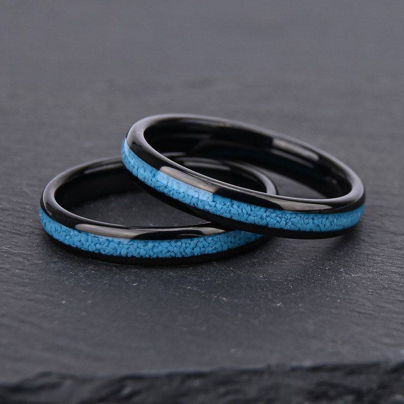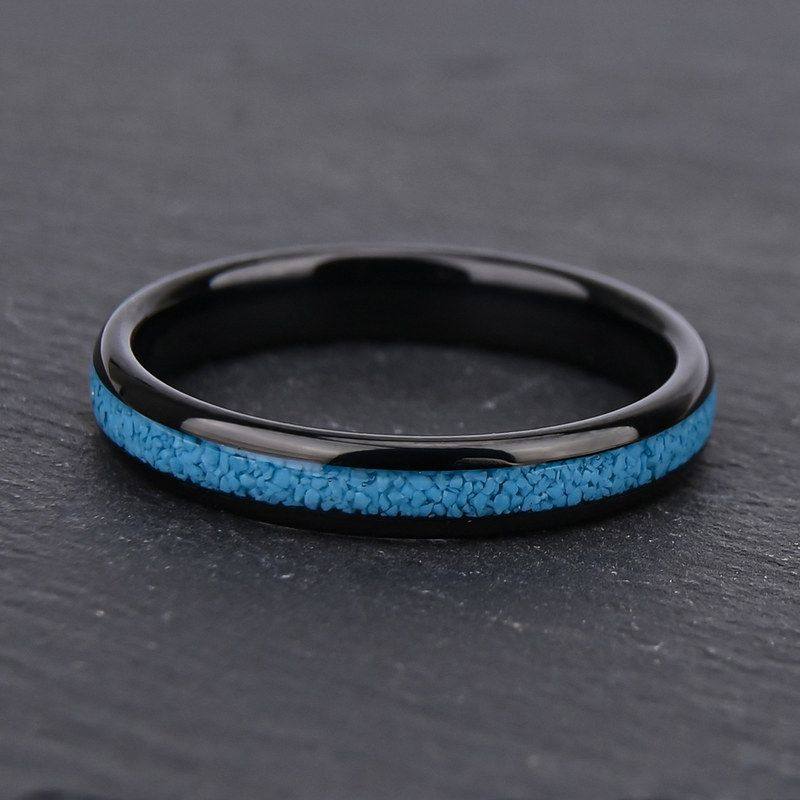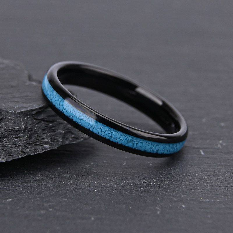 IP宽4戒指婚戒电钨钢跨境新品碎黑色球面绿松石女款天然镶嵌