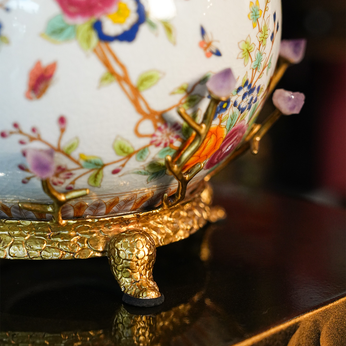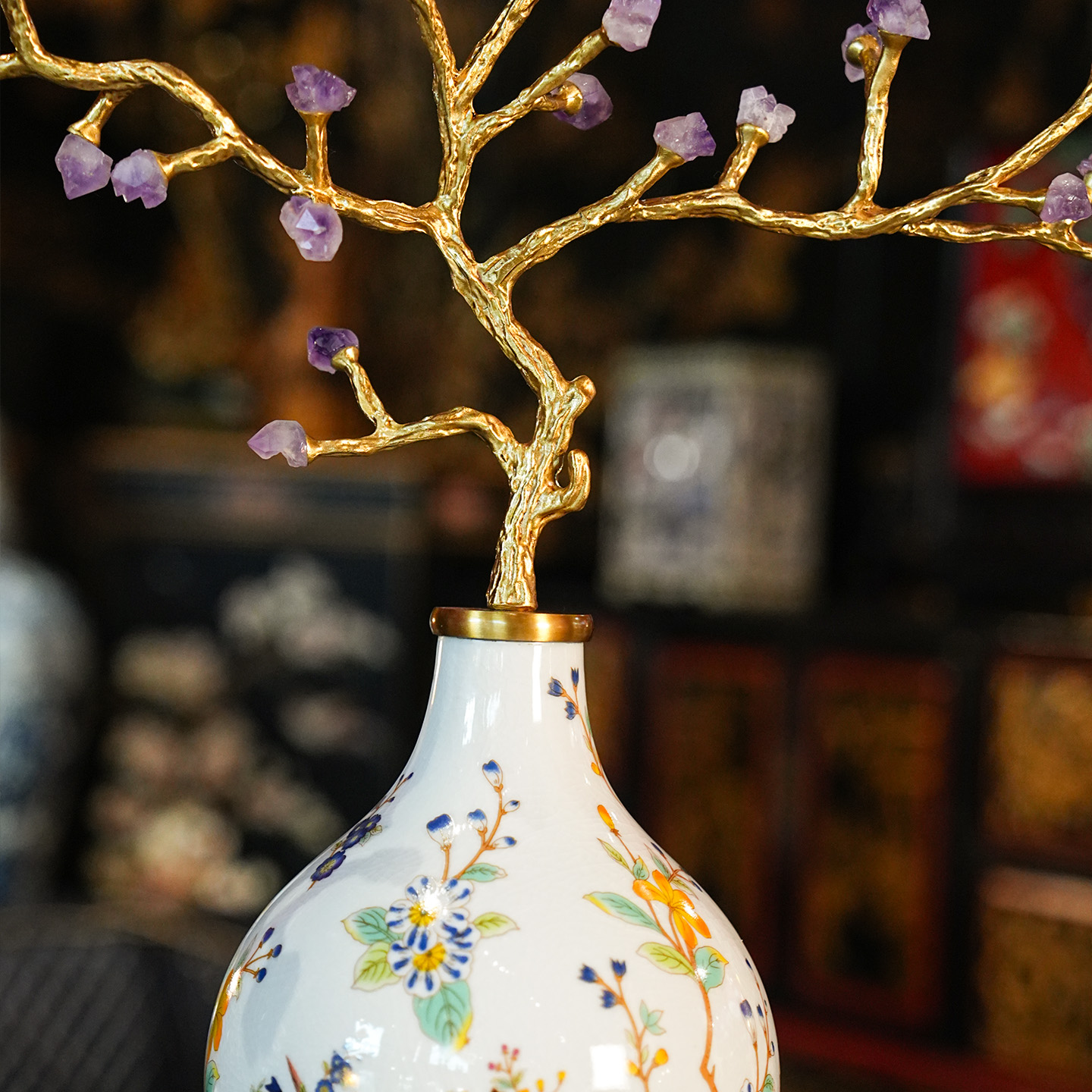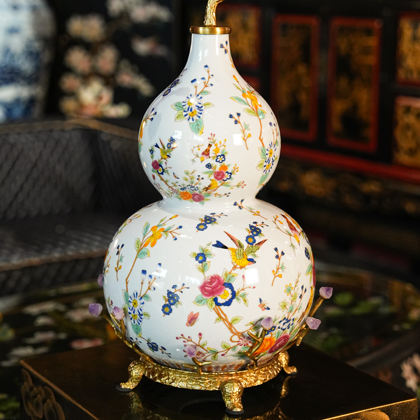【本尼家】AP136新中式装饰紫水晶花鸟葫芦客厅玄关入户摆件