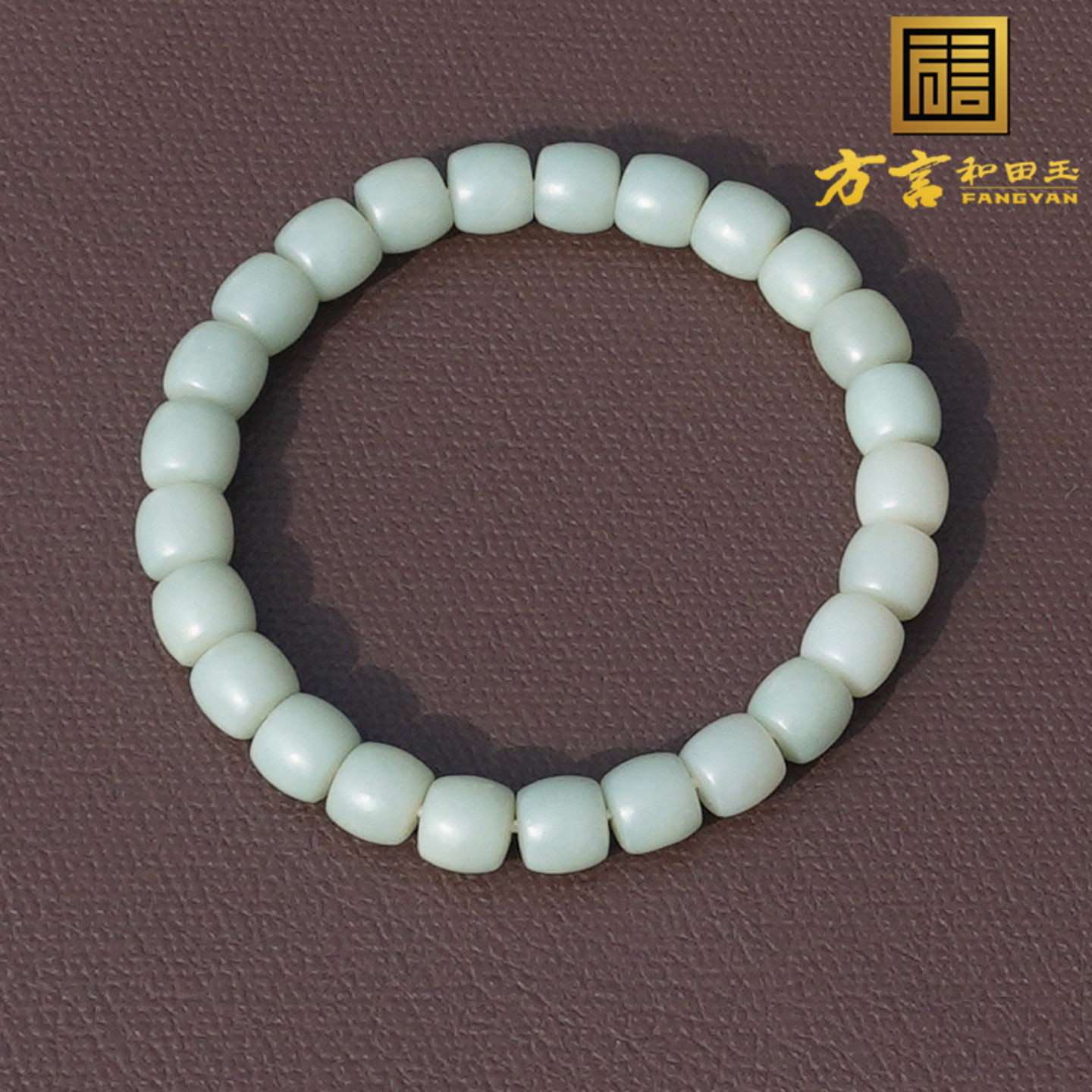 方言和田玉新疆且末料高脂糯蓝调瓷白色8mm直切小众高级感手串A6