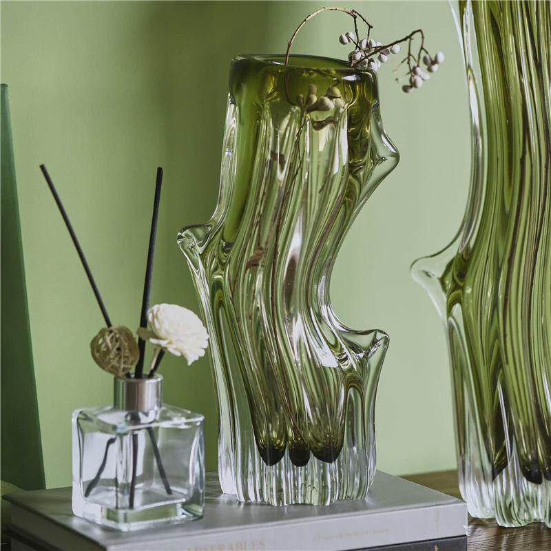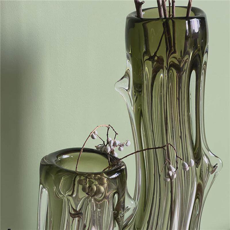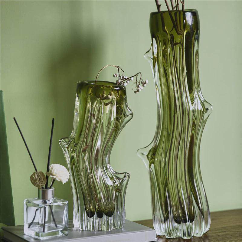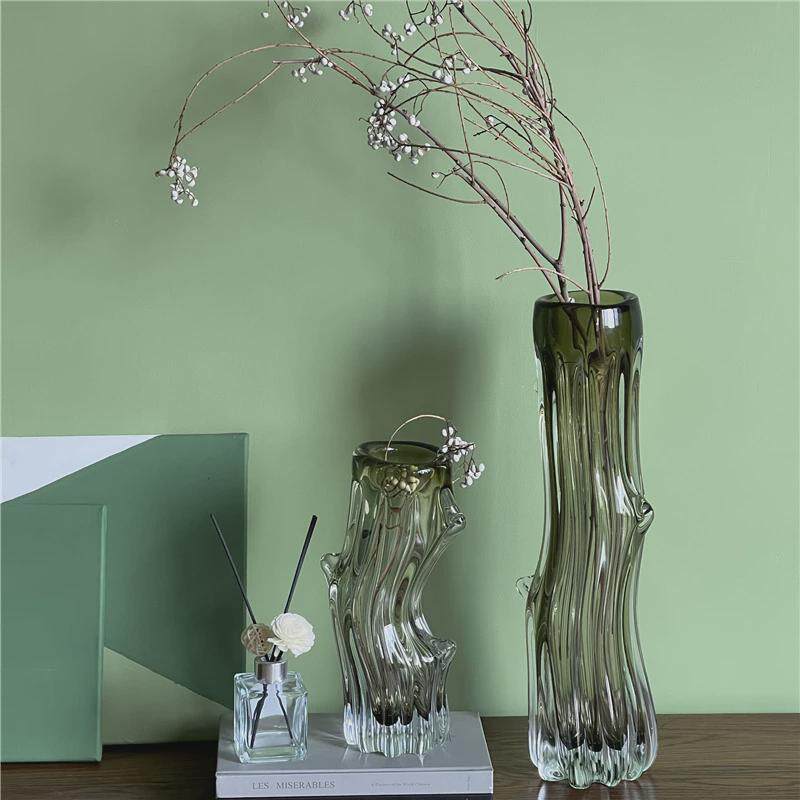 现代简约创意厚底琉璃直筒客厅玻璃花瓶居家树桩干花软装酒店摆件