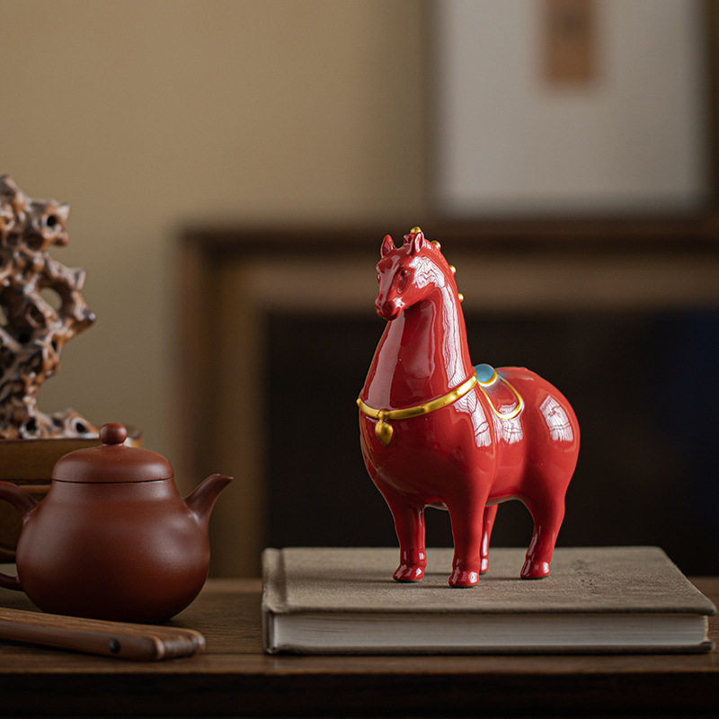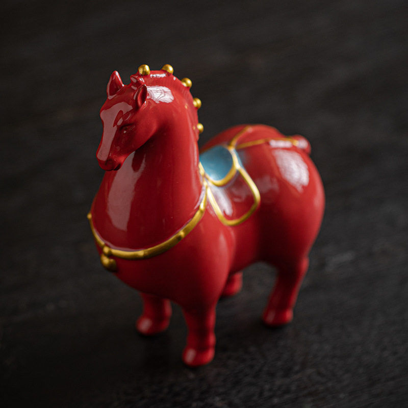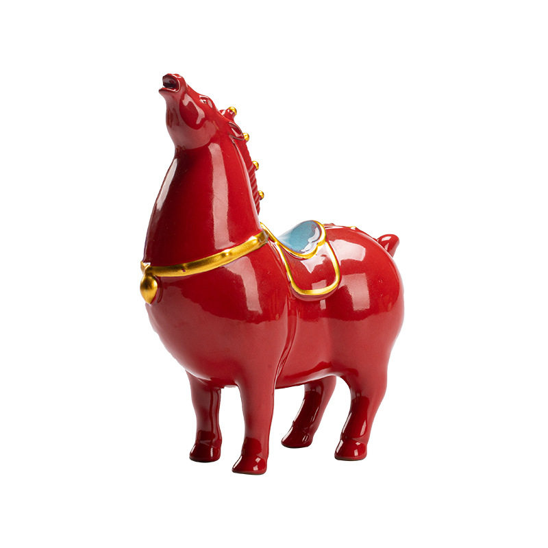 红色陶瓷骏马生肖马摆件马到成功办公室吉祥物唐马客厅家居装饰品