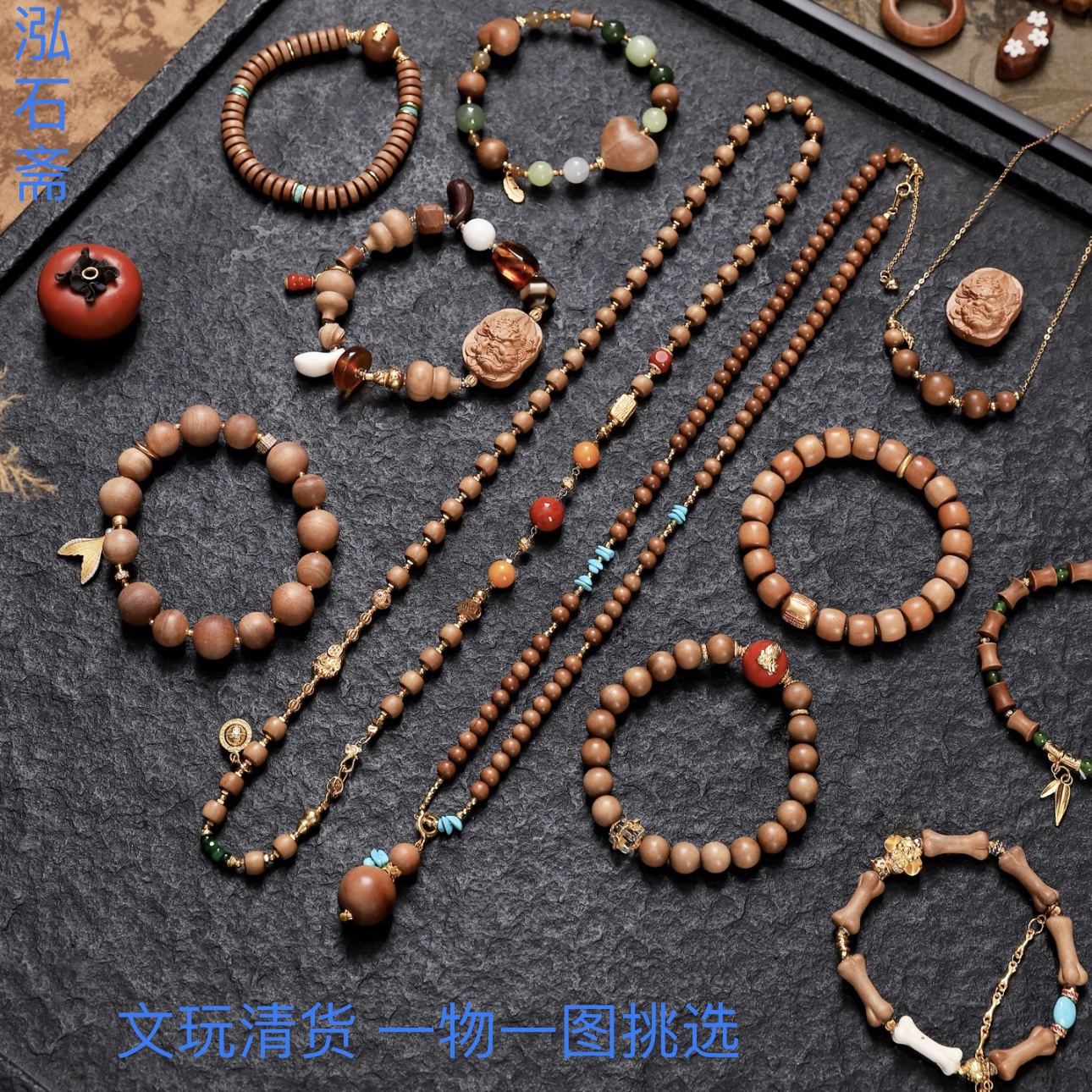 2A170 木质文玩一物一图手链佛珠毛衣链清货沉香菩提檀木猴头橄榄