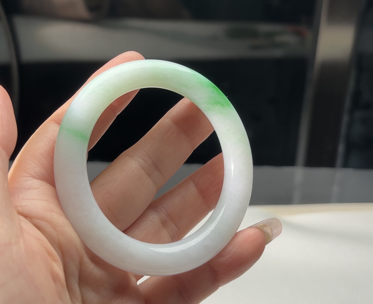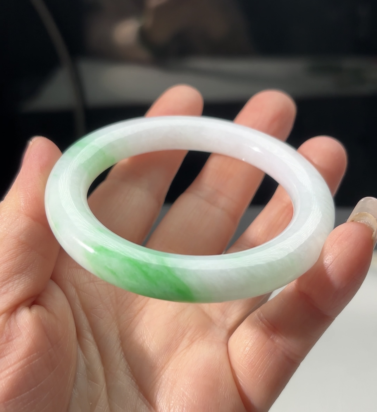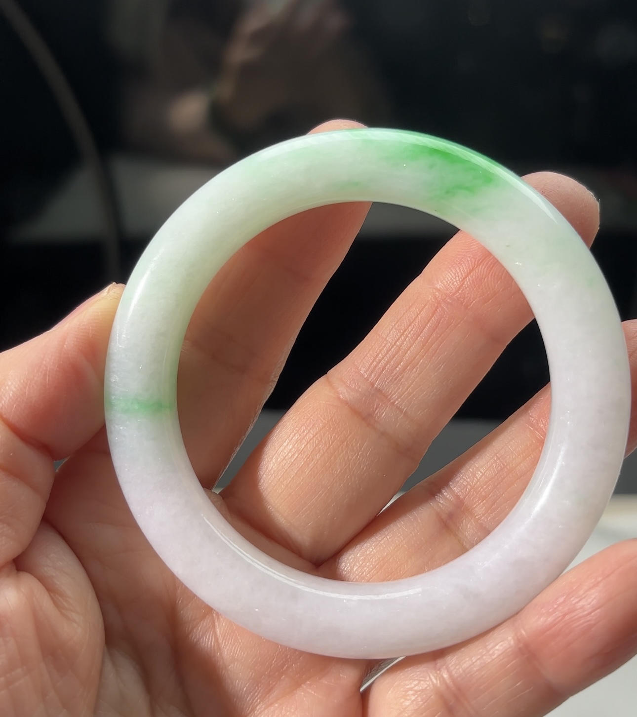 魔法饰 正宗缅料白底翠 翡翠手镯 53圈口