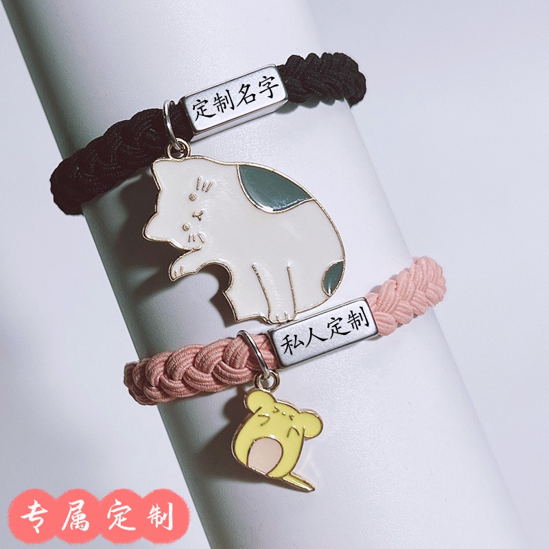 新款定制刻字名字情侣手链可爱猫和老鼠一对女送闺蜜男友专属手环