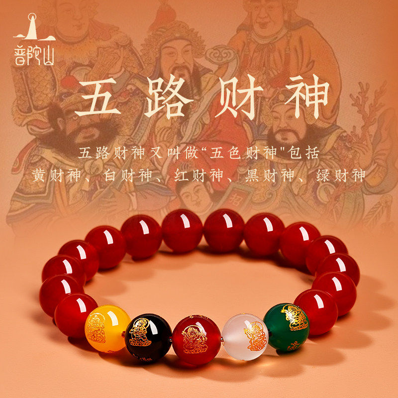 普陀山红玛瑙手串女款五路财神官方店天然水晶手链红色转运珠佛珠