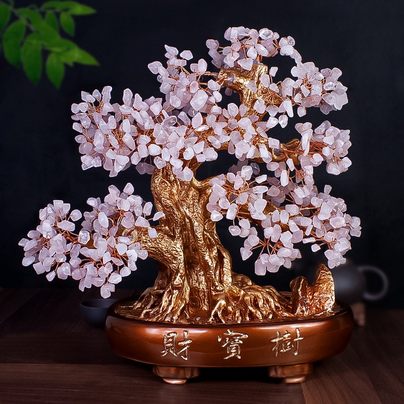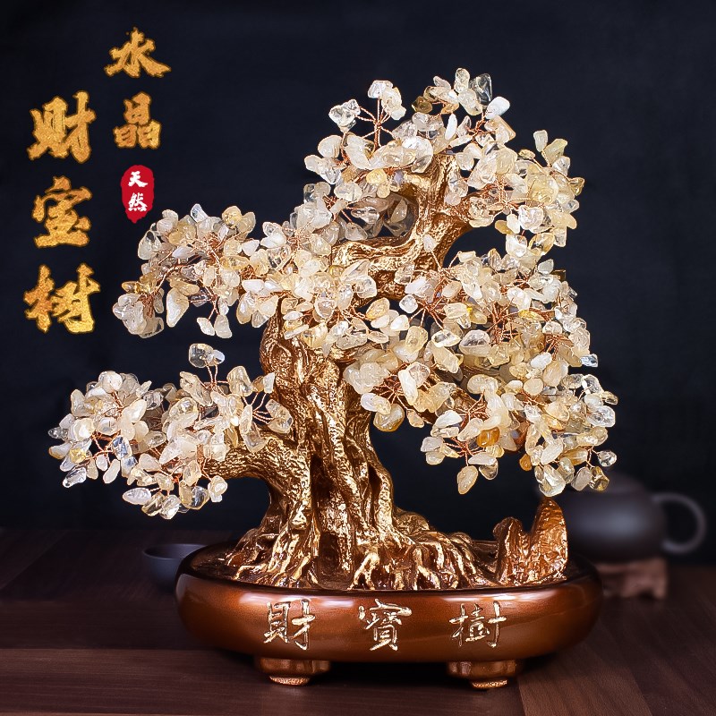 天然水晶摇钱发财树招财摆件办公乔迁客厅电视柜新年装饰新居酒