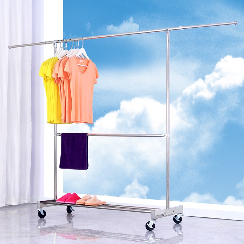 不锈钢晾衣架落地家用阳台单杆晒衣架伸缩移动晒被子衣杆凉衣架