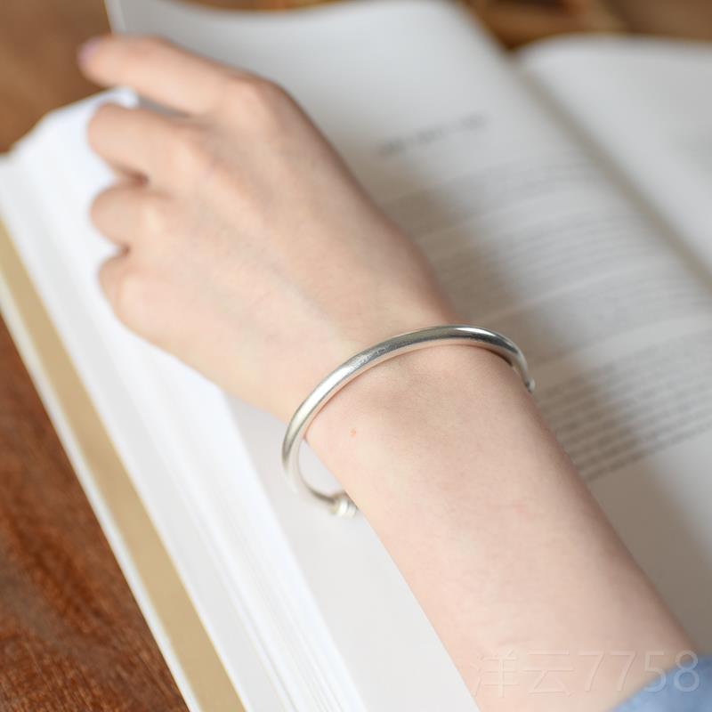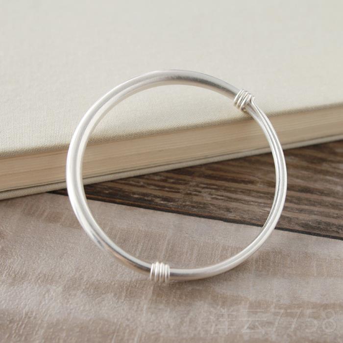 高档99镯纯银原创文螺旋口圆手送女友送闺蜜礼艺9物