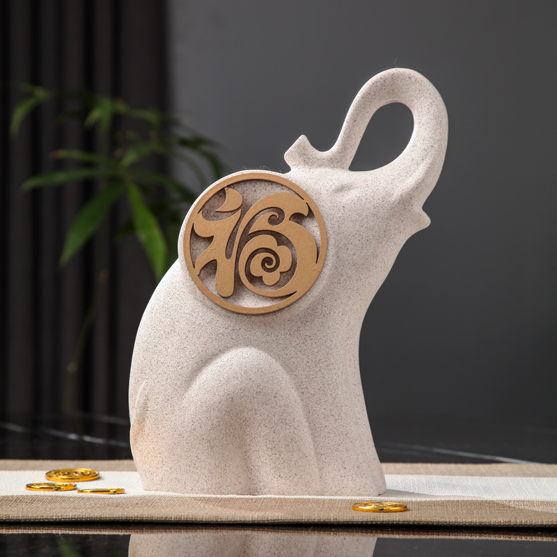 客厅家居装饰品新中式玄关电视柜大象摆件办公室桌面酒柜陶瓷摆设