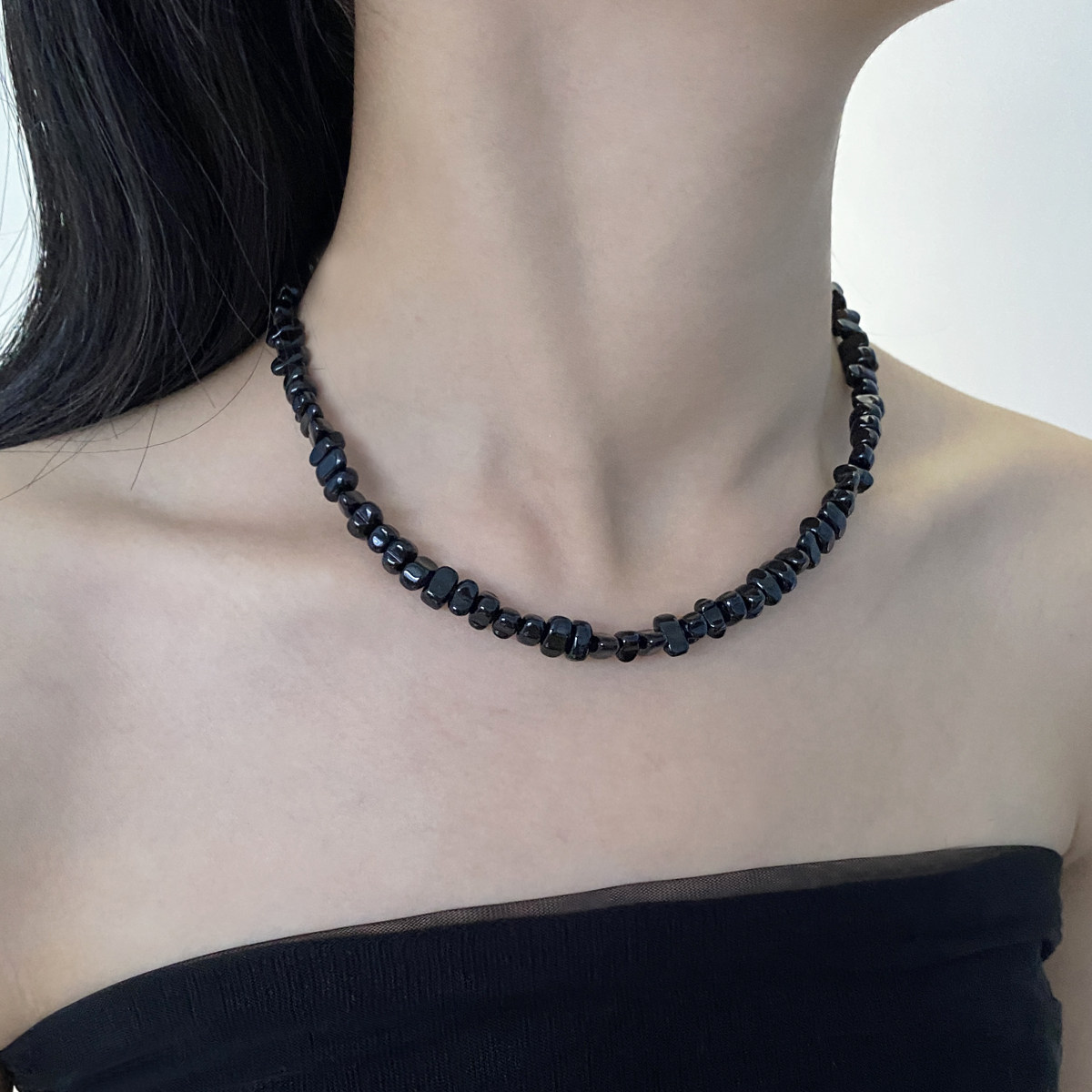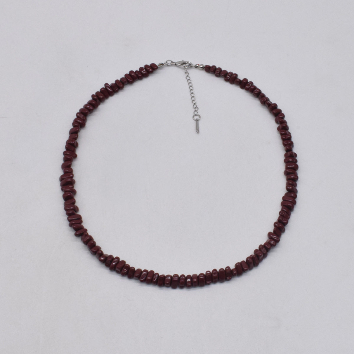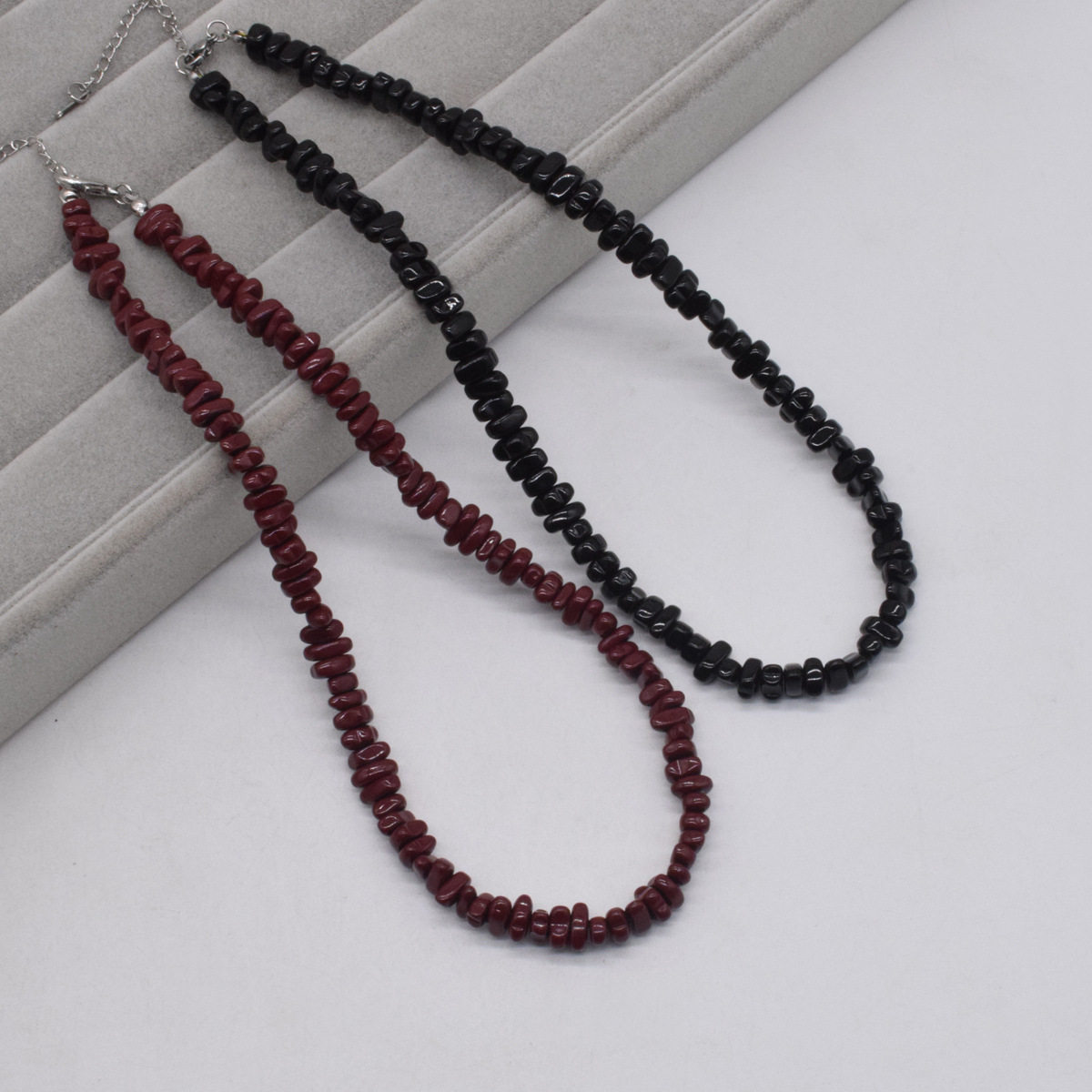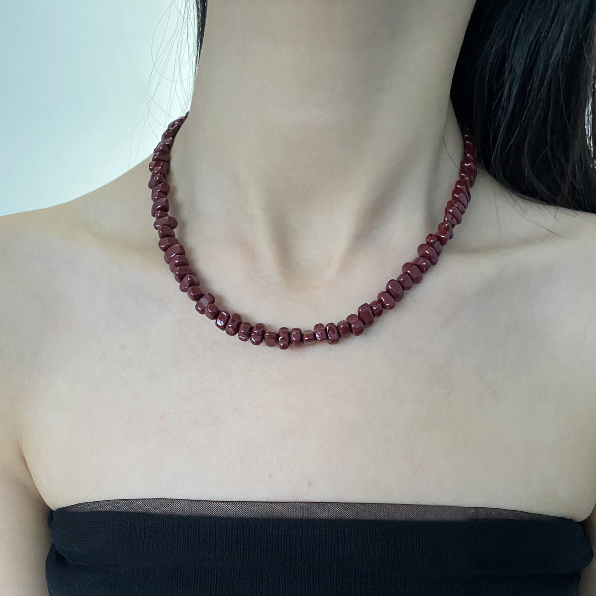 暗红色几何碎石串珠项链女 ins小众安可拉红复古气质简约锁骨链潮