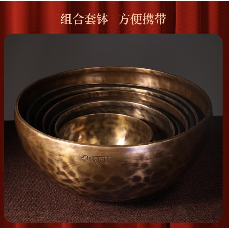 佛音碗哄宝宝睡觉四面錾刻满月颂钵音钵尼泊尔手工婴儿安抚静心钵