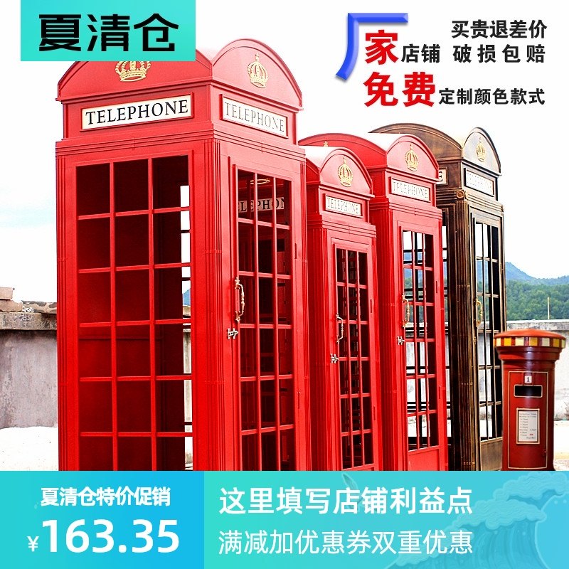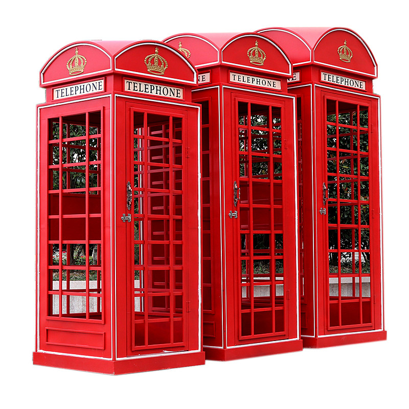 定制欧式复古红色电话亭铁艺摆件英伦工业风创意网红装饰道具模型