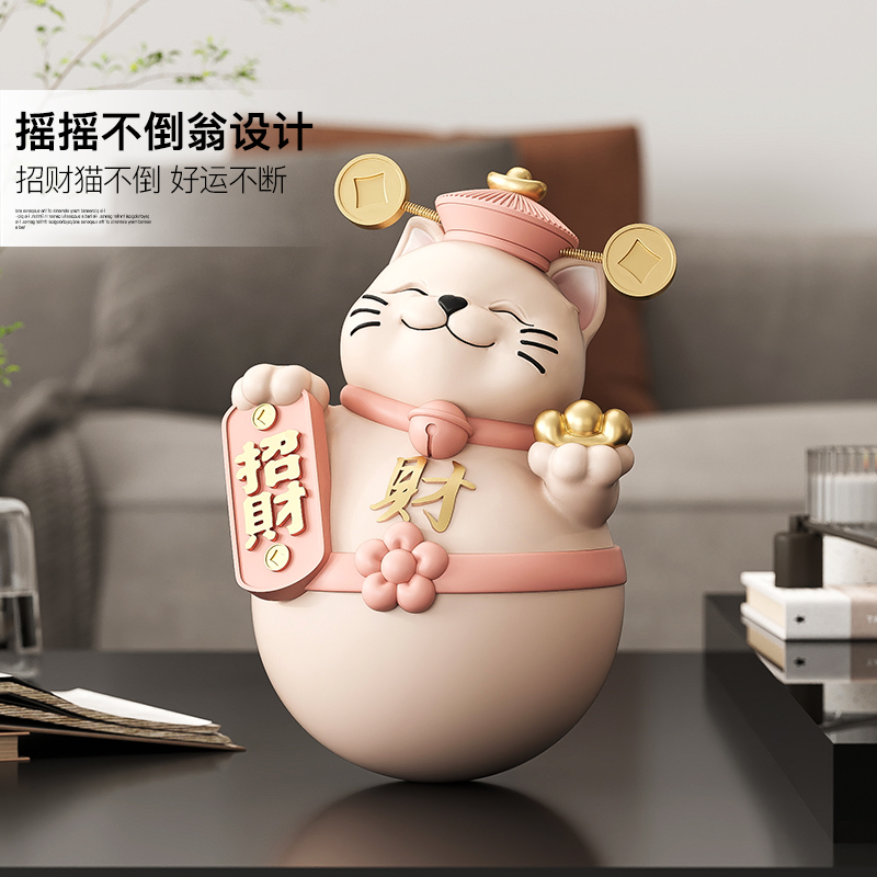 国潮招财猫摆件创意不倒翁客厅电视柜桌面装饰品店铺开业乔迁礼品