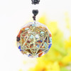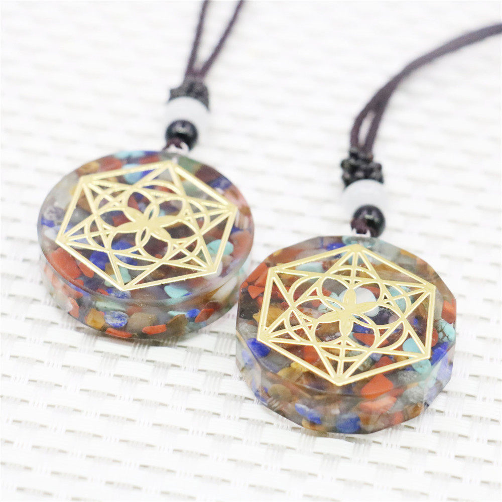 光面/切面六边形金泊树脂天然石头多彩项链 男女毛衣链衣服配饰