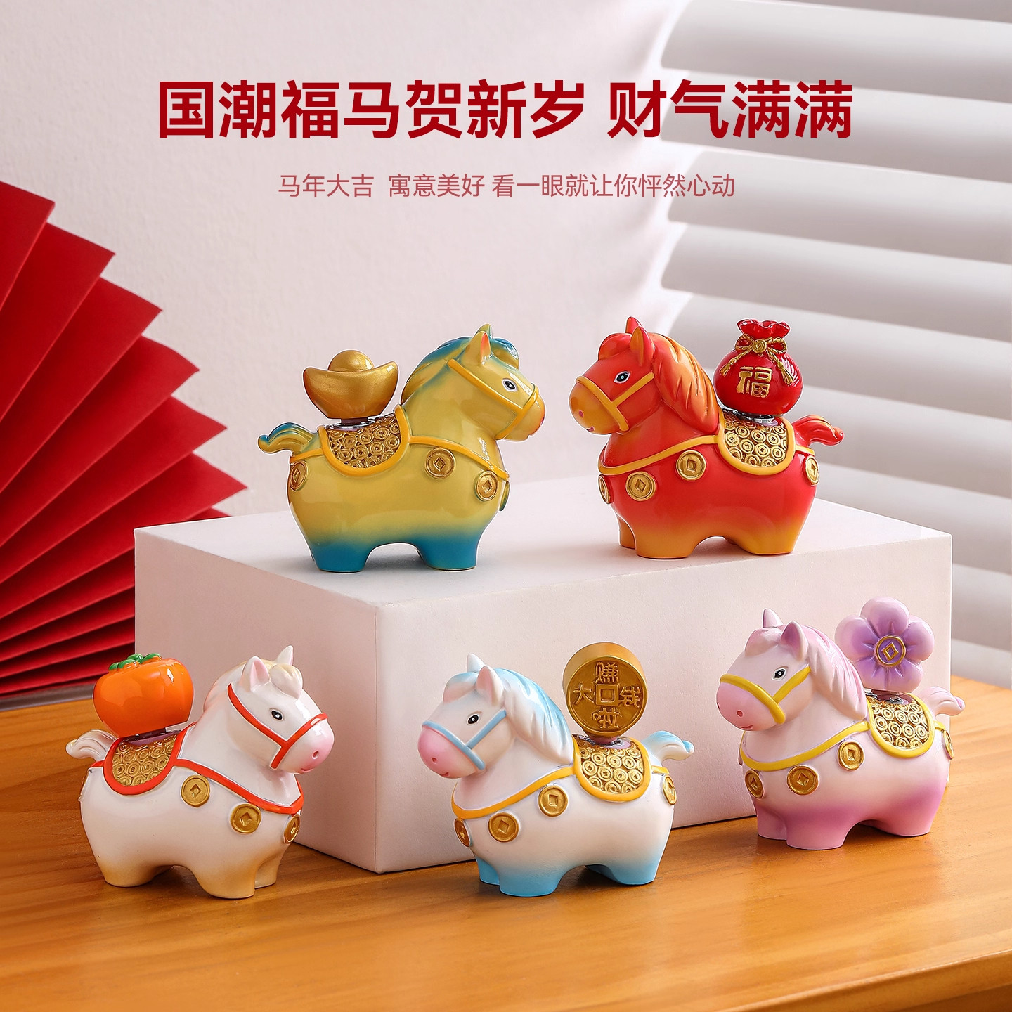 2026马年吉祥物生肖小马上有钱发财摆件公仔本命新年礼物装饰玩偶